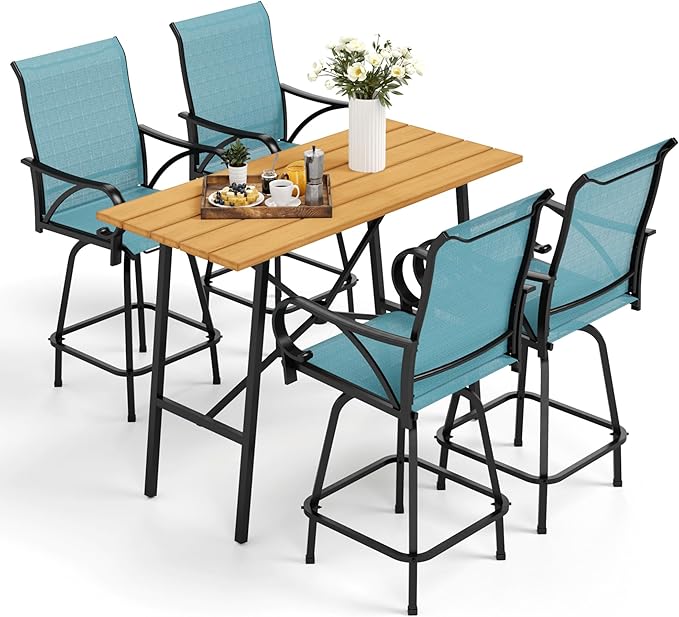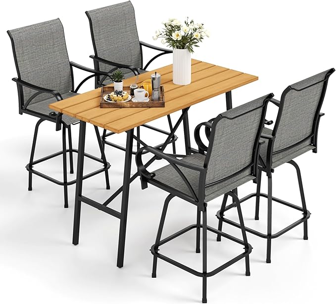 - Sling Bar Stool: 360° swivel with breathable textilene bar chair (W 23.2" x L 26.4" x H 51.4") is a excellent choice for summer patio furniture.