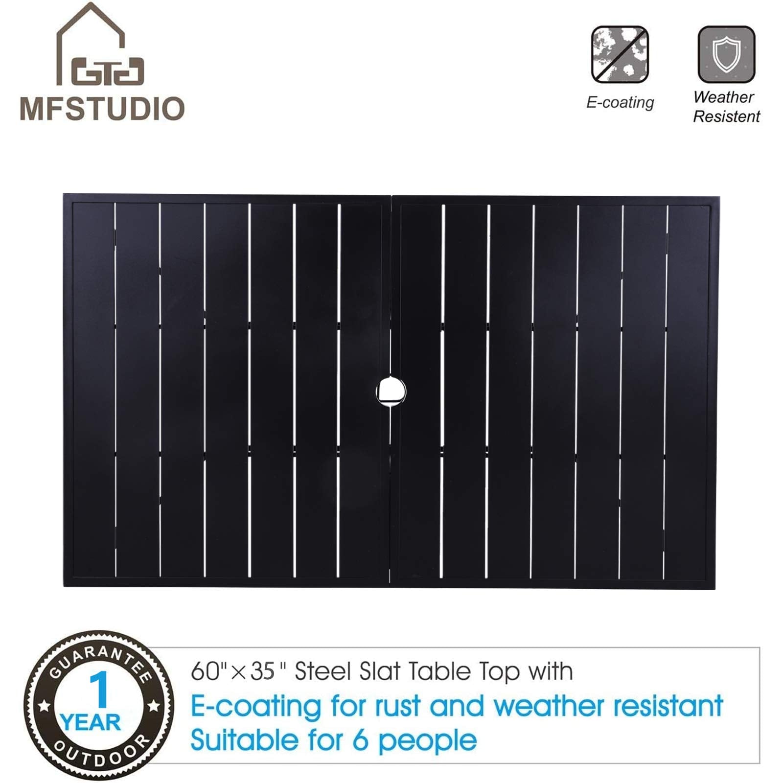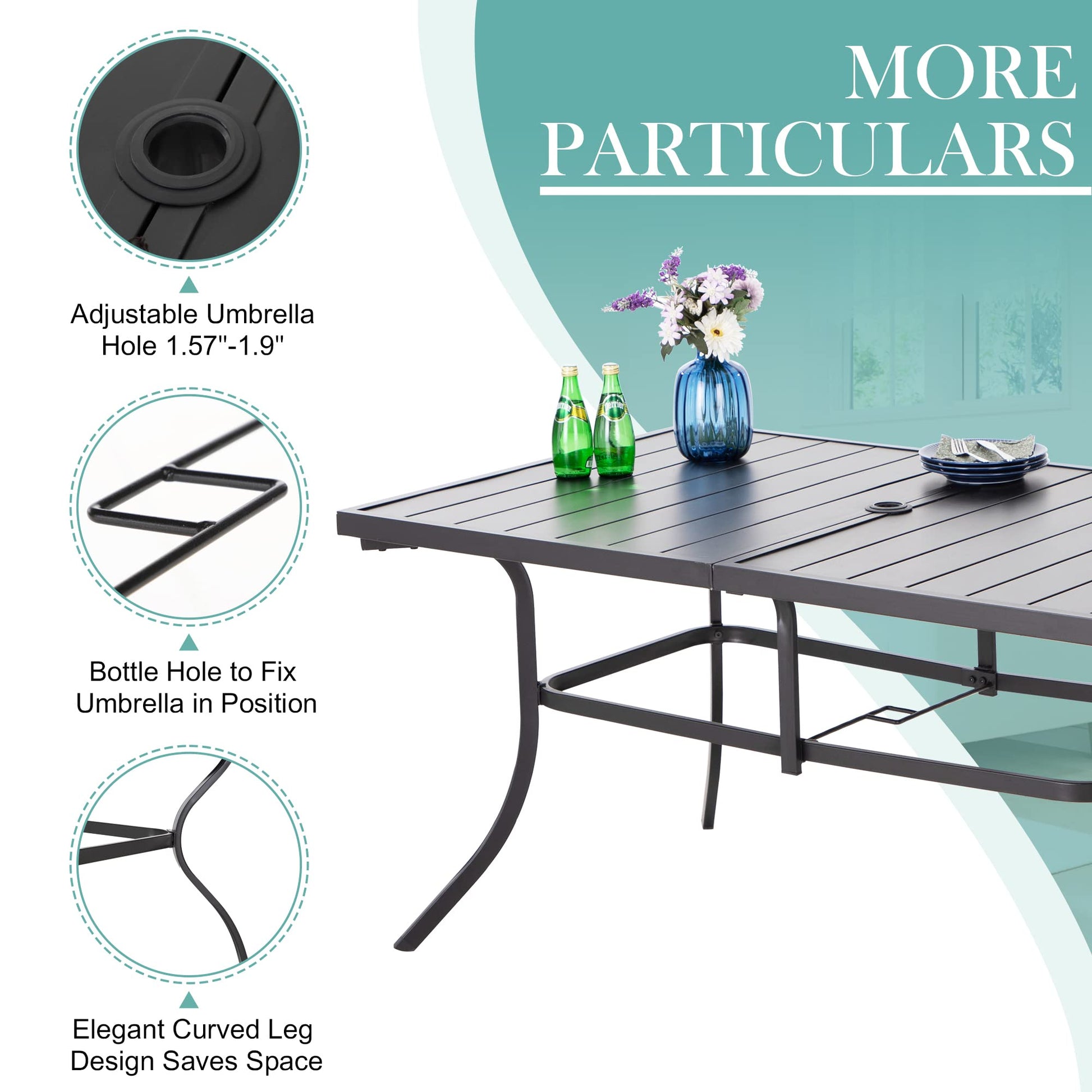 Outdoor Metal Steel Slat Dining Rectangle Table with Adjustable Umbrella Hole