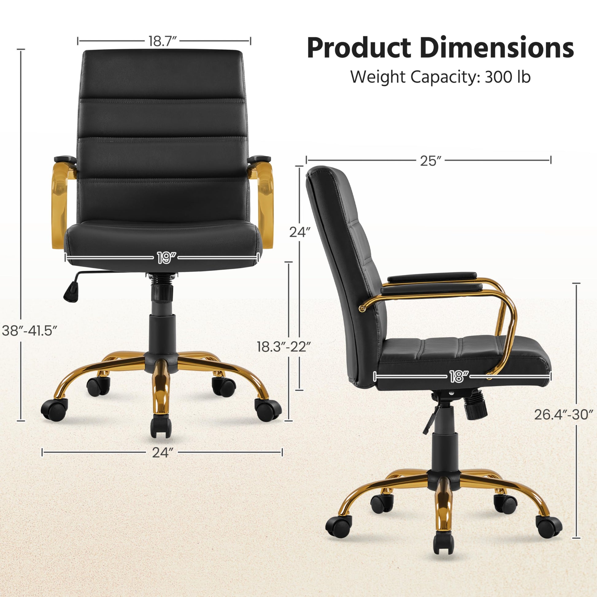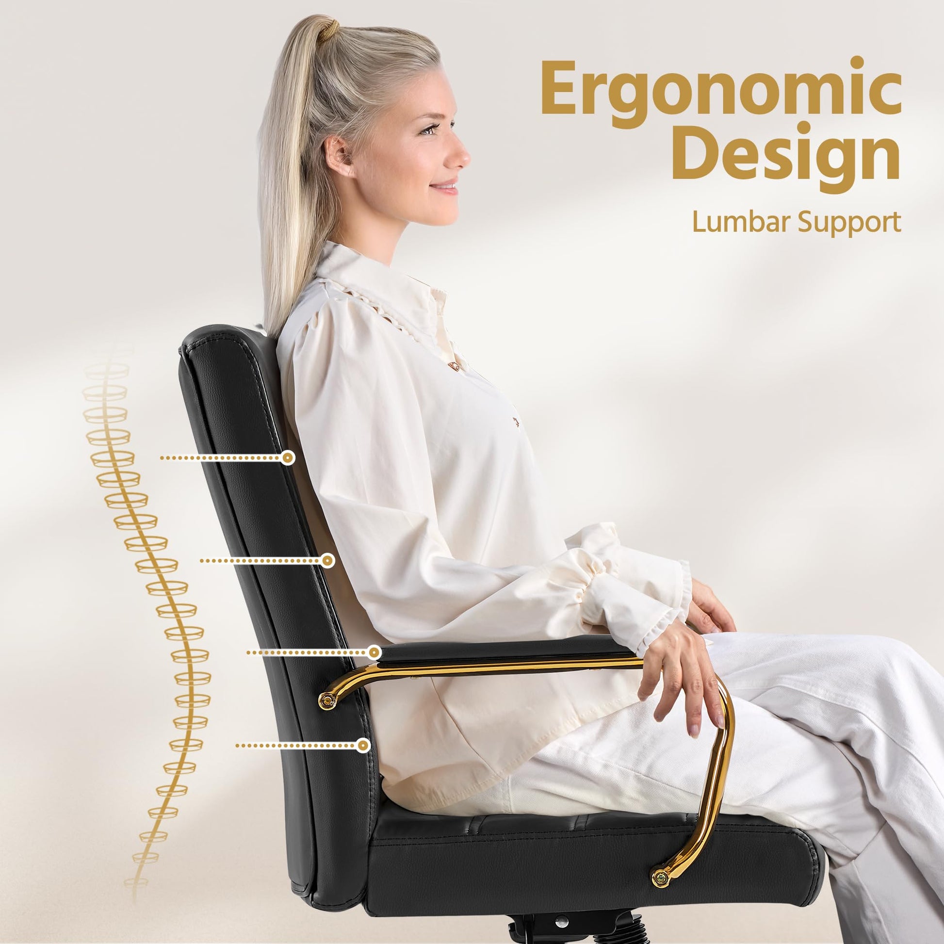 Elevate your workspace with this premium mid-back executive office chair, expertly crafted to deliver exceptional comfort and sophisticated style throughout your workday. The supple PU leather upholstery paired with elegant gold-tone legs creates a refined aesthetic that complements any professional environment.