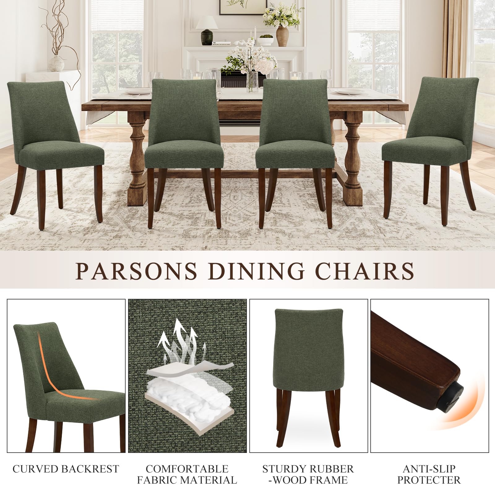 Transform your dining area with this set of four elegantly upholstered dining chairs that seamlessly blend mid-century modern design with farmhouse charm. Featuring premium fabric upholstery in a sophisticated green finish and solid wood legs, these chairs deliver exceptional comfort and enduring style for any dining room, kitchen, or restaurant setting.