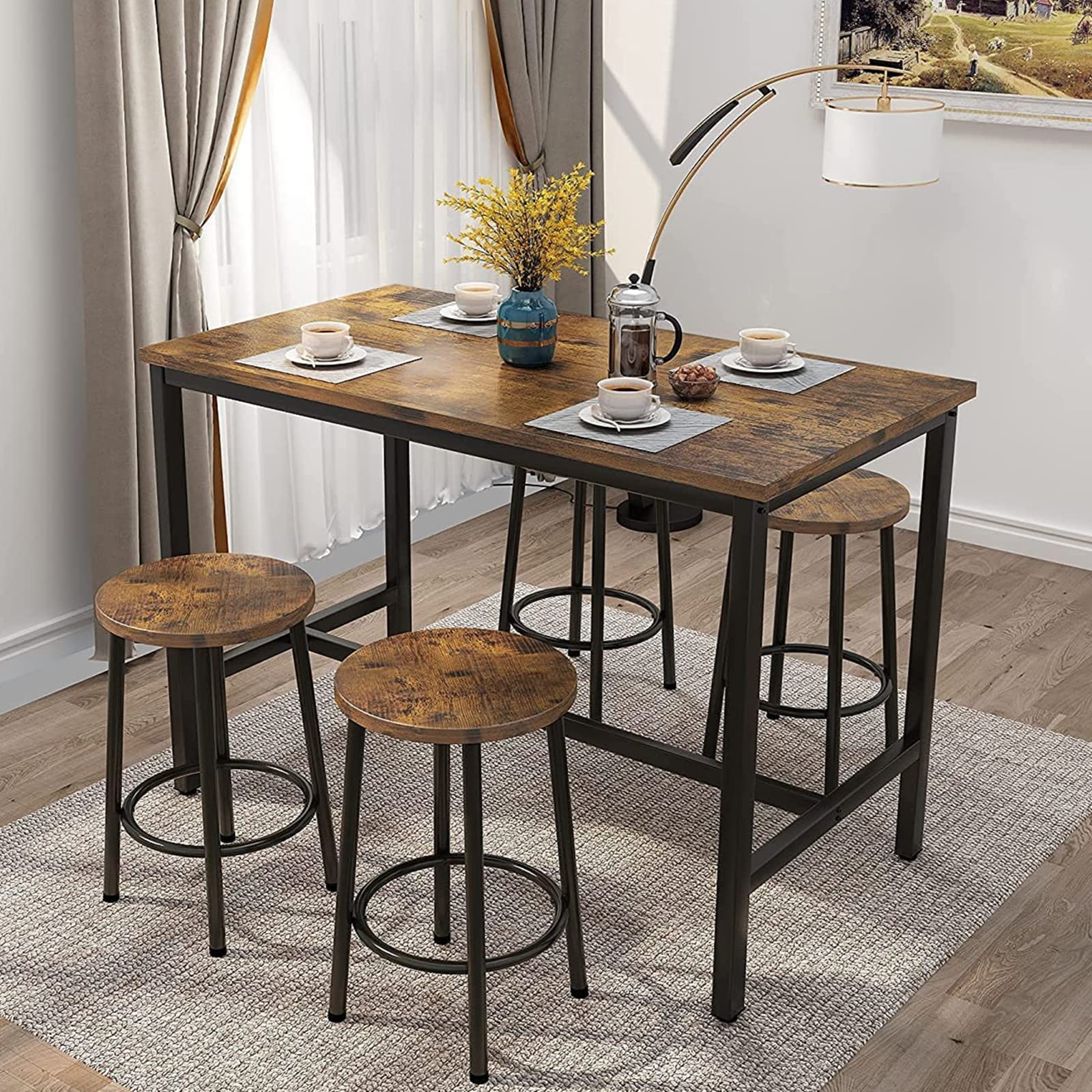 - The 5 pieces Dining Table Set are including 1 dining room table 4 stools, to save space, the stool fit underneath the table. This counter height table set is ideal for enjoying a delightful drink time with your families or entertaining friends with refreshments at home.