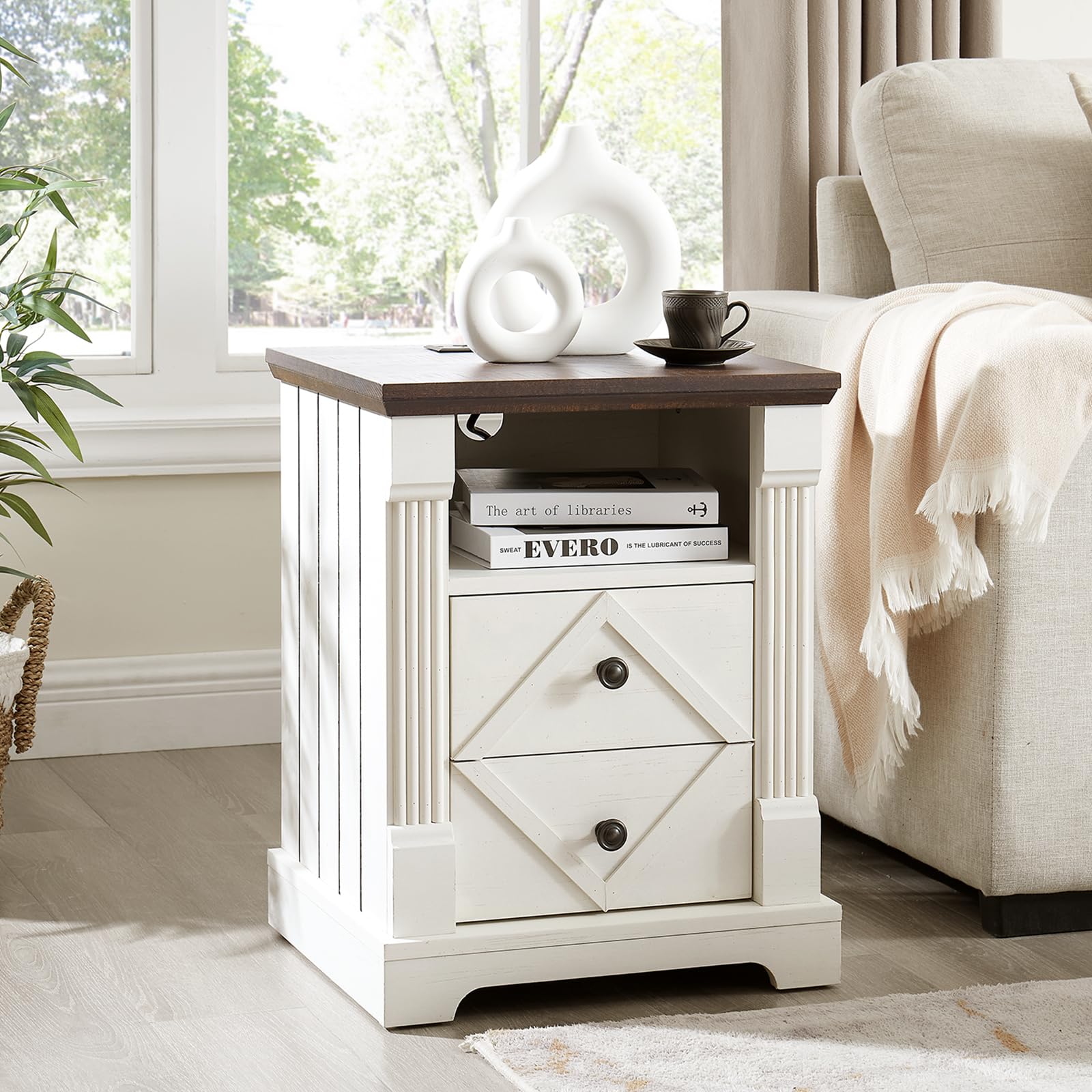 Nightstand with Charging Station, Rustic 18 Inch Farmhouse End Table with Barn Door