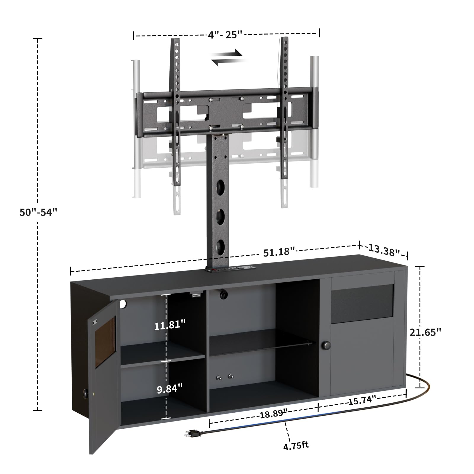 - This Modern TV stand with led lights comes with an integrated TV mount, guaranteeing the secure and steady positioning of your television. The universal TV mounting bracket design accommodates most 32/45/55/60/65-inch TVs. It makes for an ideal addition to diverse spaces such as the living room, bedroom, and office.
