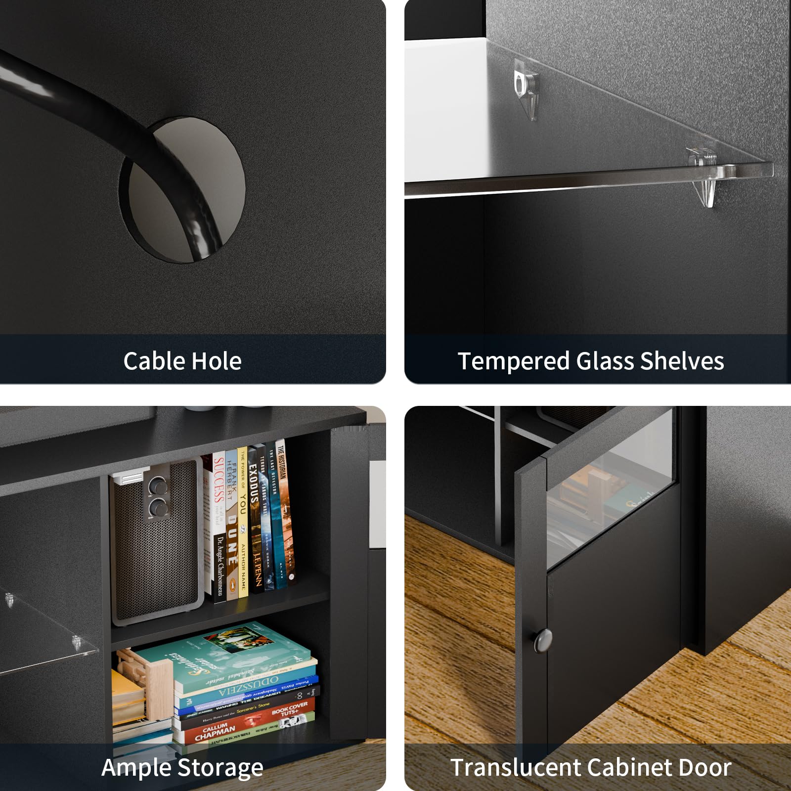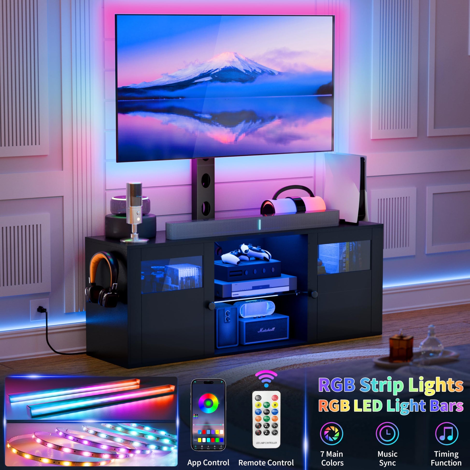 TV Stand with Mount and Power Outlet, Led Lights Entertainment Center
