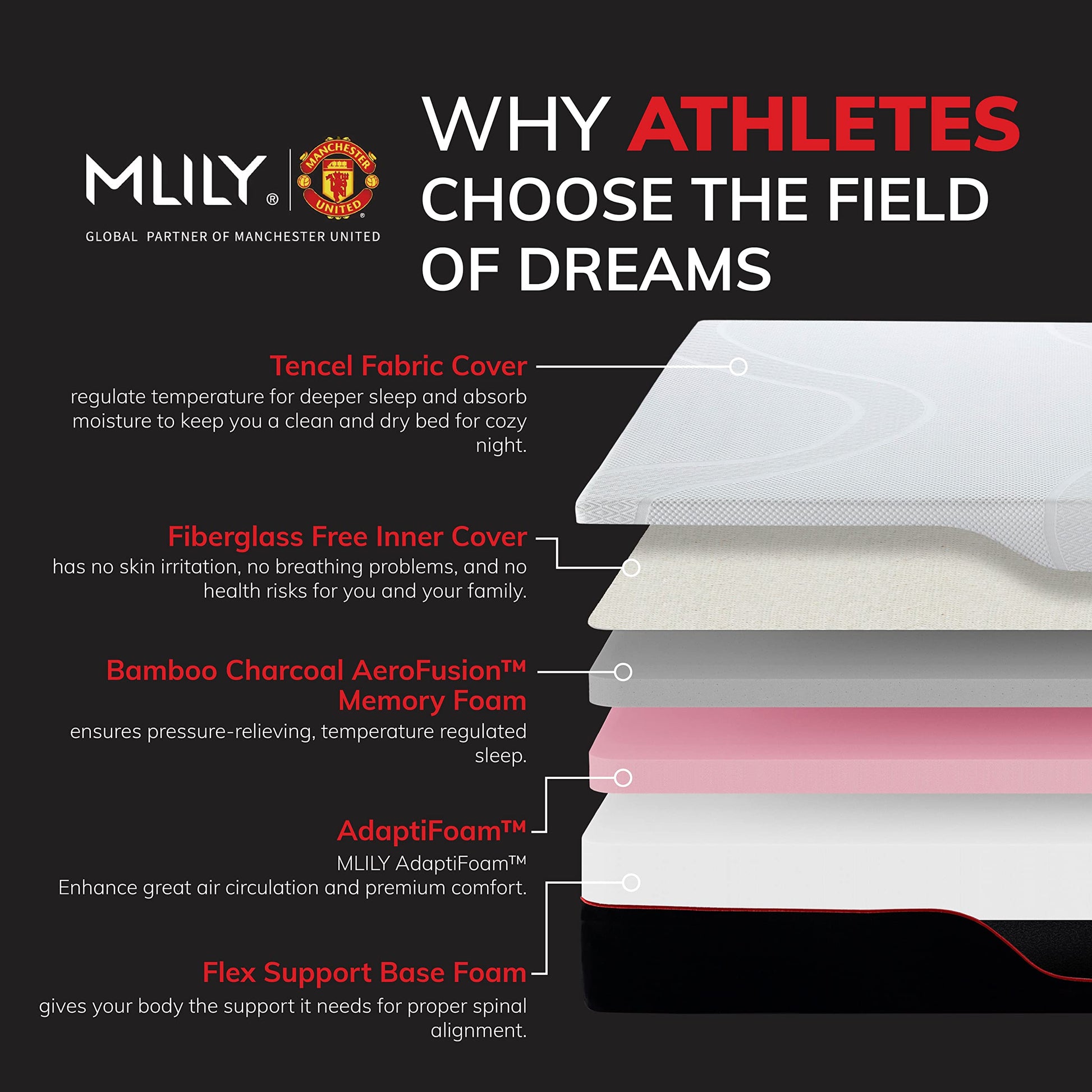Queen Mattress, Manchester United 12 Inch Memory Foam Bamboo Charcoal Mattress