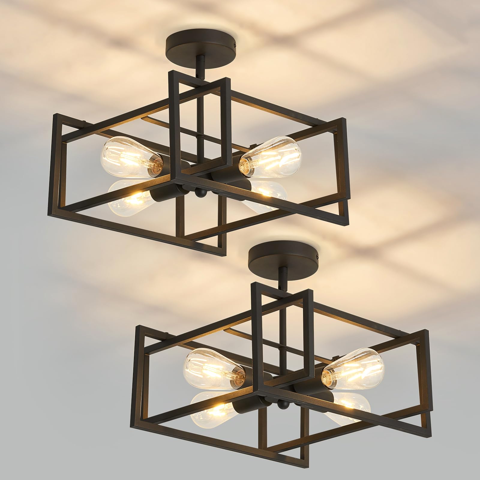 Elevate your interior spaces with this sophisticated 2-pack modern black flush mount ceiling light fixture. Designed to blend seamlessly with farmhouse, contemporary, and transitional décor, this versatile lighting solution delivers both style and functionality to kitchens, dining rooms, bedrooms, foyers, and entryways.