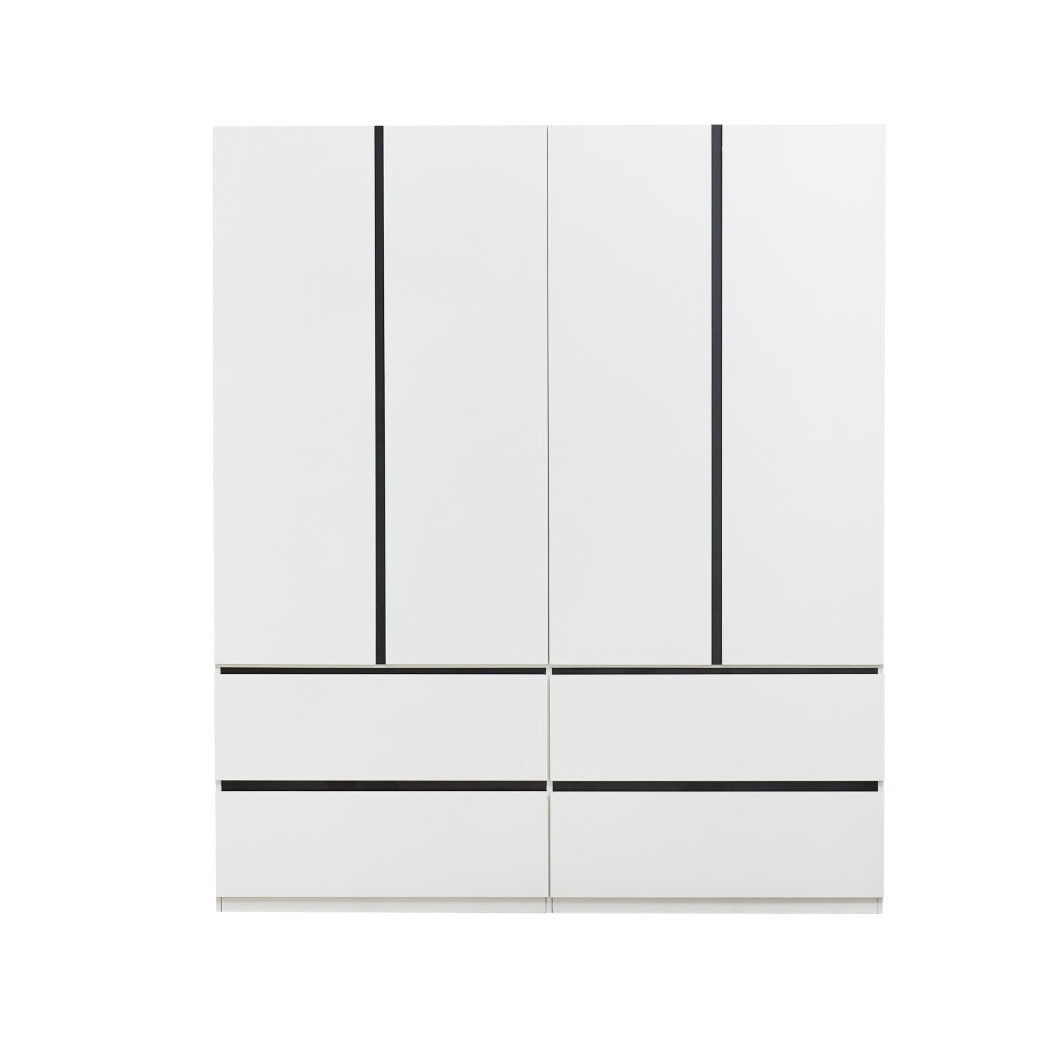 - - This four-door bedroom wardrobe provides ample storage space for your clothes. The tall cabinet features a clothes rail, 3 storage compartments, and 4 spacious drawers. The multiple storage spaces can meet your various organization needs. You can store blankets, toys, clothes, pillows, bags, and more.