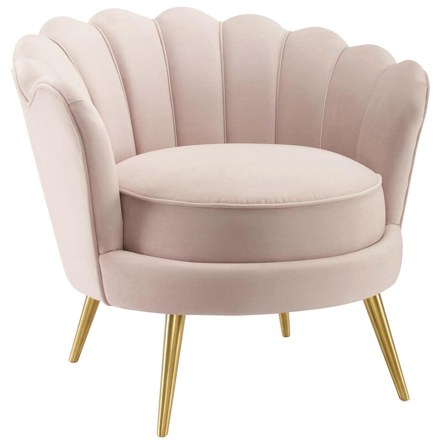 Admire Scalloped Edge Performance Velvet Accent Lounge Arm Chair in Pink