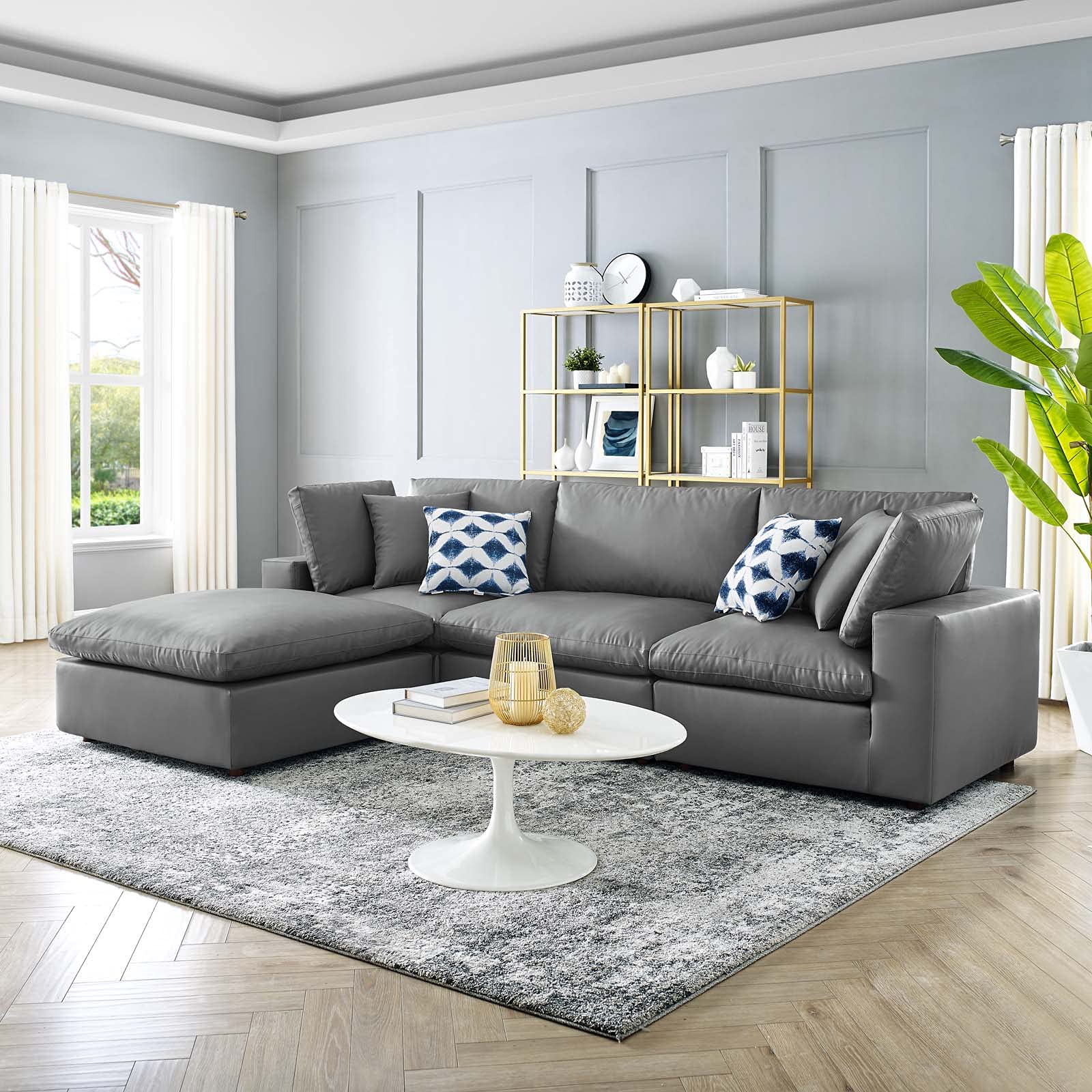 Modway Commix Down-Filled Overstuffed Vegan Leather 4-Piece Sectional Sofa