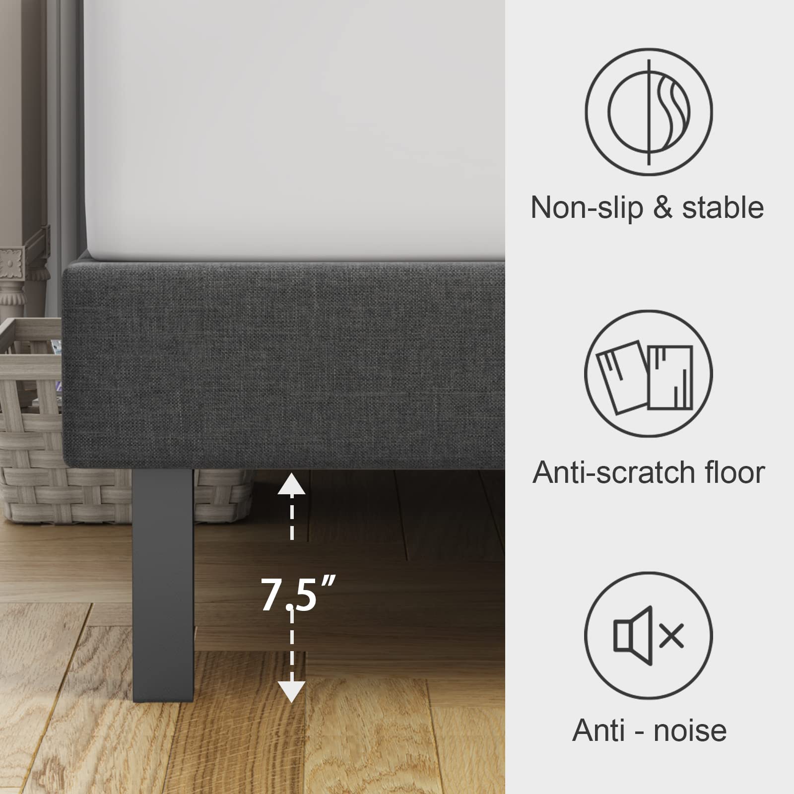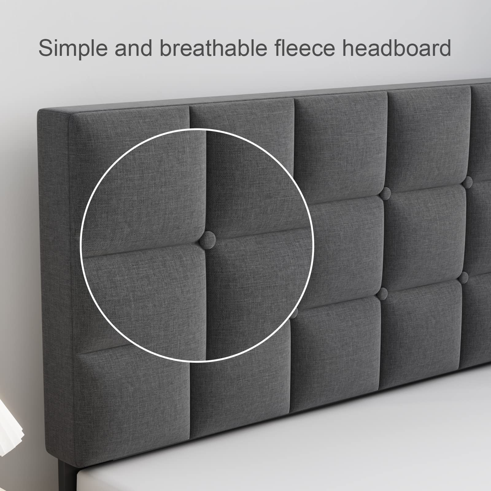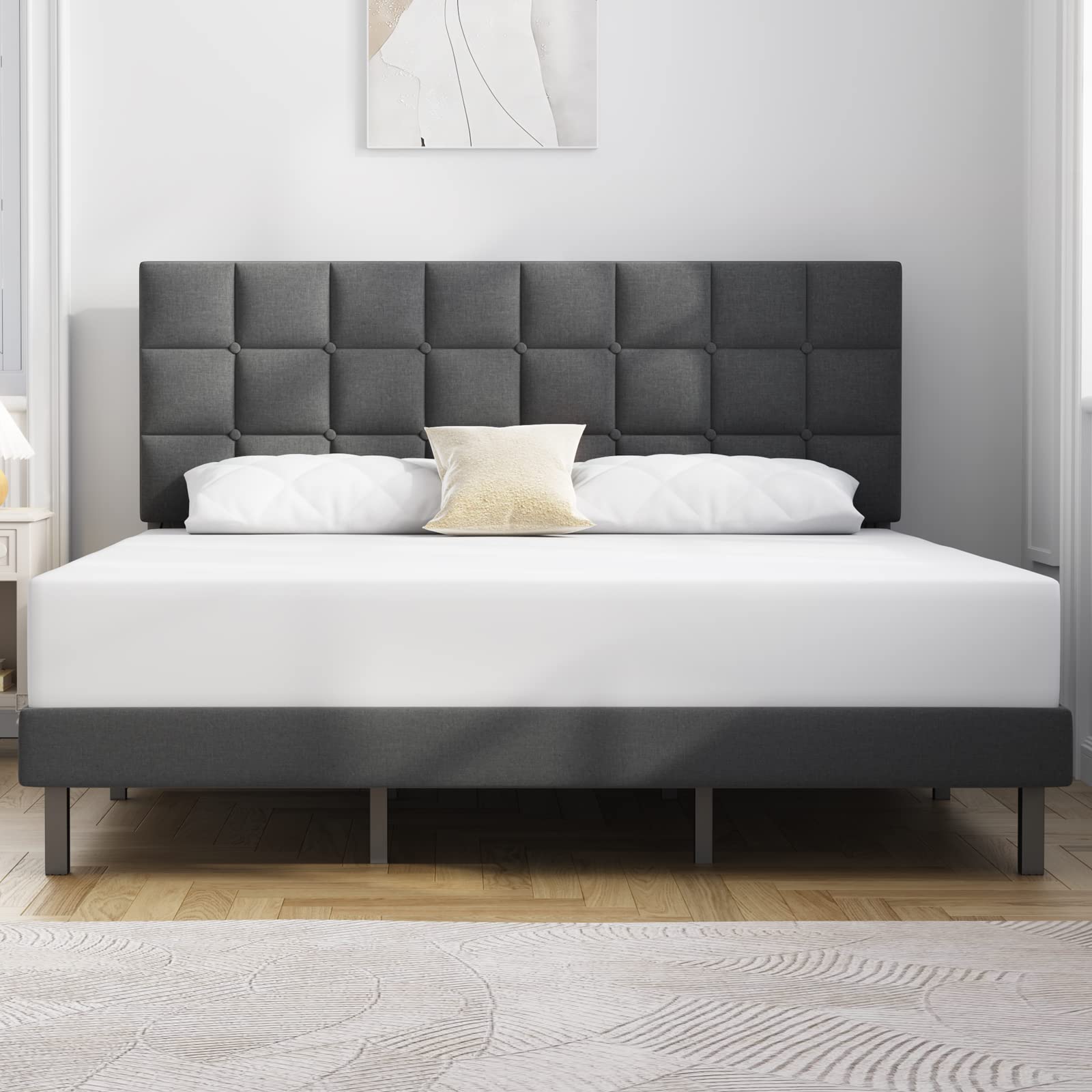 King Bed Frame Upholstered Platform with Headboard and Strong Wooden Slats,Non-Slip
