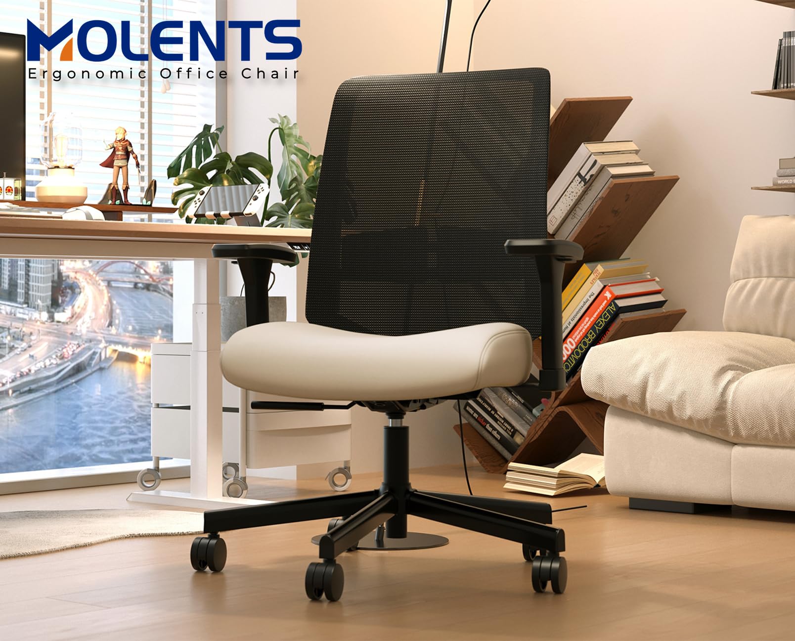 - Stay cool and comfortable with Molents comfy modern office chair's breathable mesh back and cushioned seat, ideal for home office, study, and executive settings.