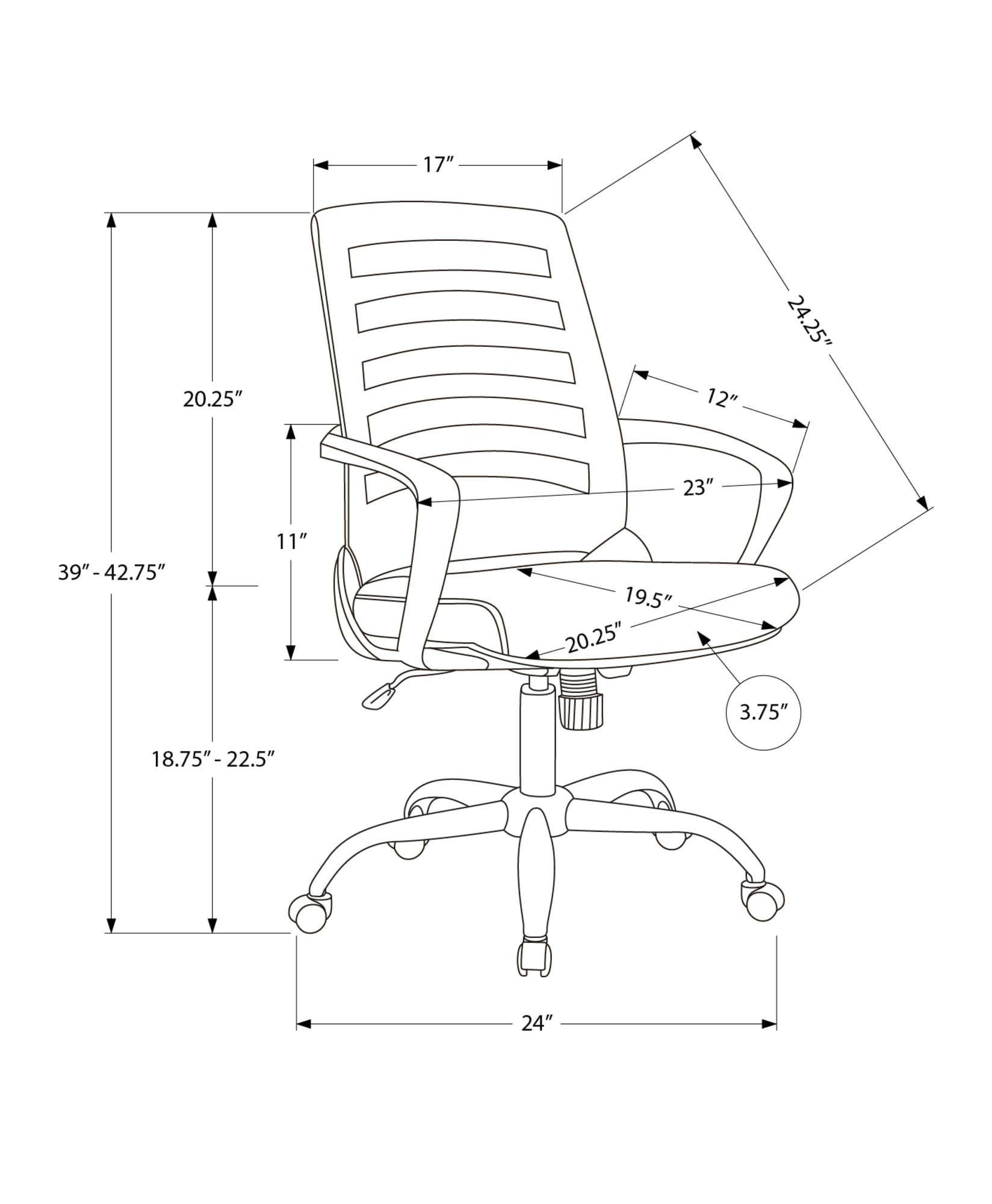 - Back and Seat upholstered in durable grey mesh fabric with thick cushioning
