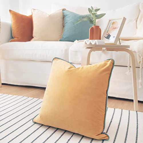 - SET OF 4: Includes 1 beige velvet pillow + 1 teal velvet pillow + 1 yellow velvet pillow + 1 orange velvet pillow