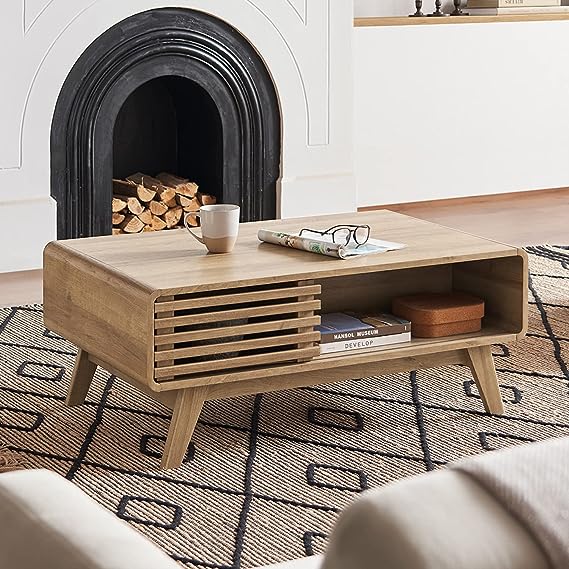 - Design: Featuring raised edges that are expertly crafted, it prevents items from dropping or too much spillage from the table. Its minimalistic design with simple curves lets the natural beauty of the wood come through. Trendy with new homeowners, it's a design that is both functional and aesthetically pleasing