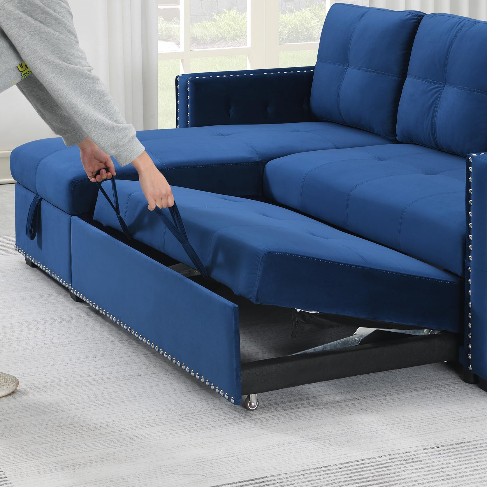- Hassle-Free Assembly: No need to stress over complicated setup. Experience convenience and ease with the easy assembly feature of this sofa with pullout bed, making it a practical choice for any home decor. Our sectional sleeper sofa comes with straightforward assembly instructions and tools, ensuring a hassle-free experience.