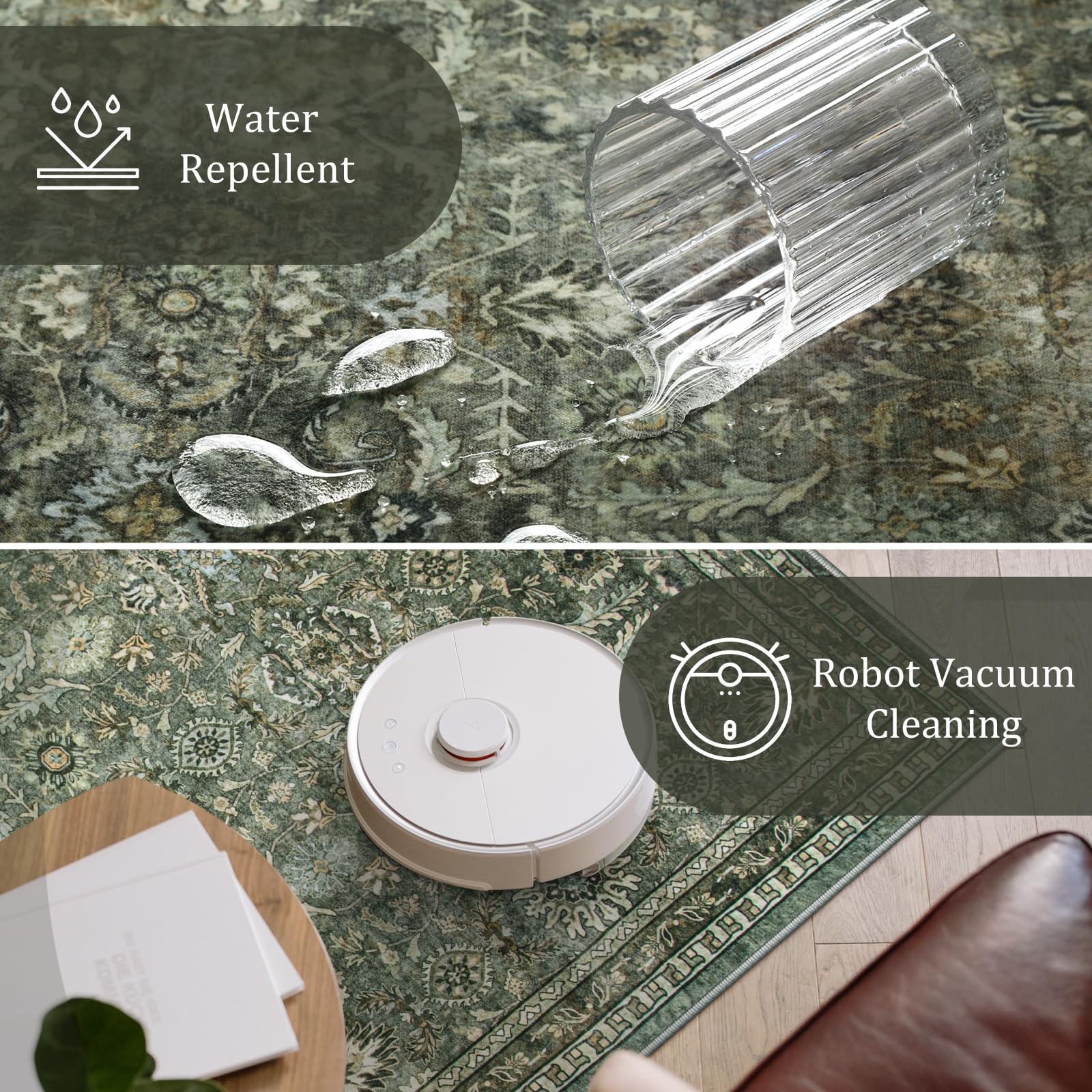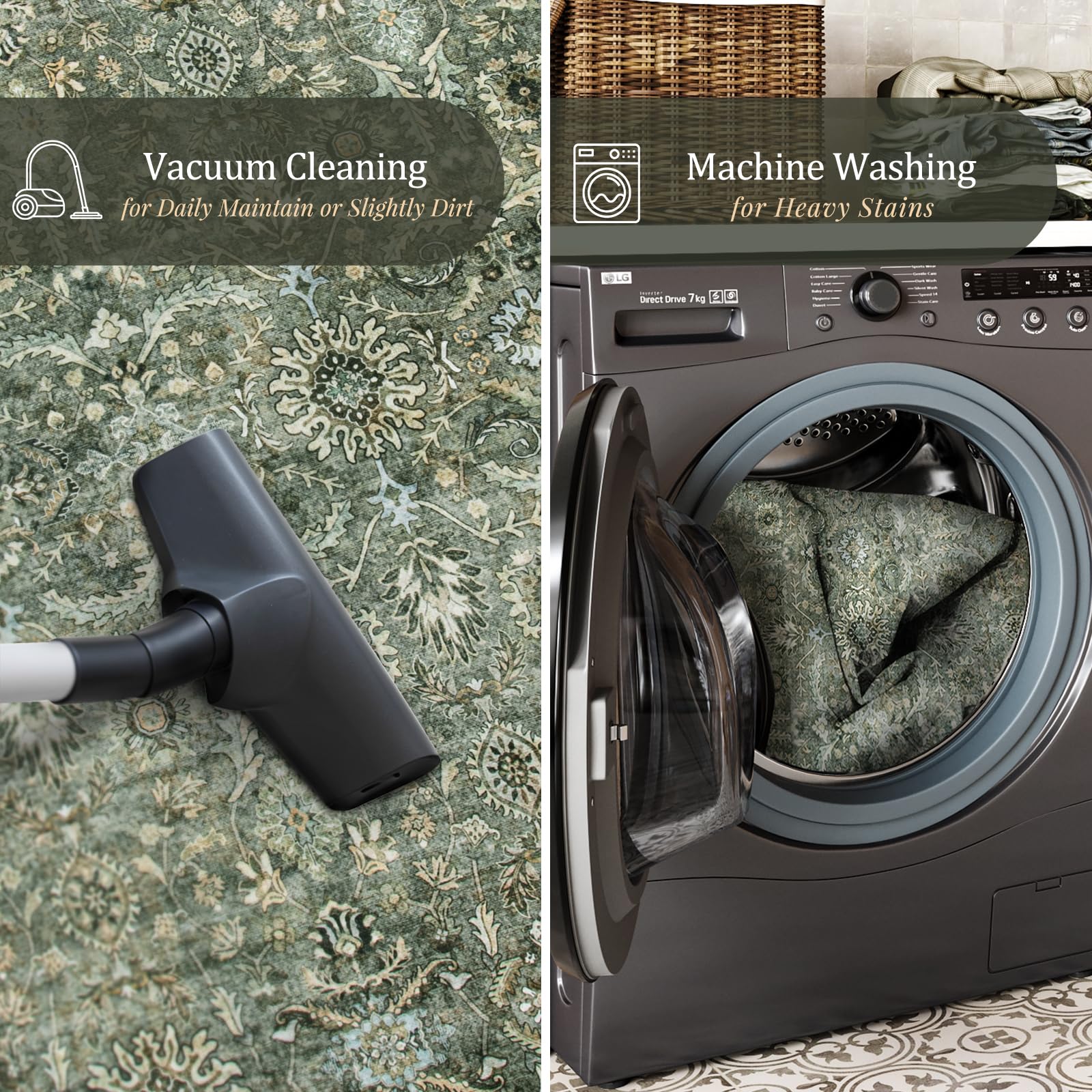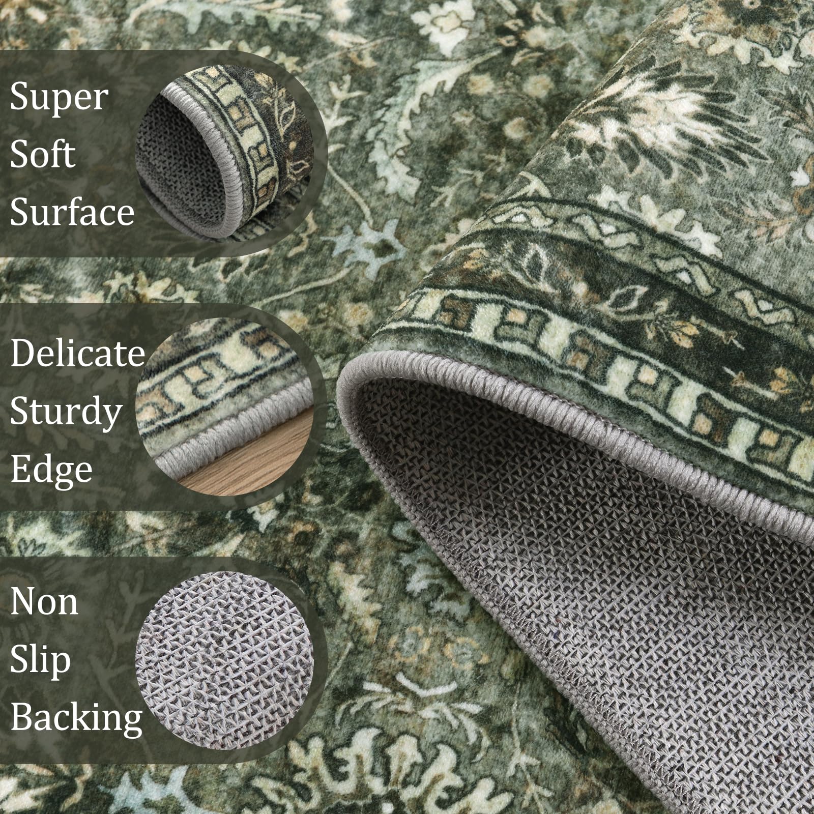 Green 8x10 Rugs for Living Room, Boho Washable Area Rugs for Bedroom Non Slip,