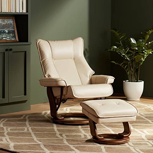Morgan Stucco Swivel Faux Leather Recliner with Ottoman Chair