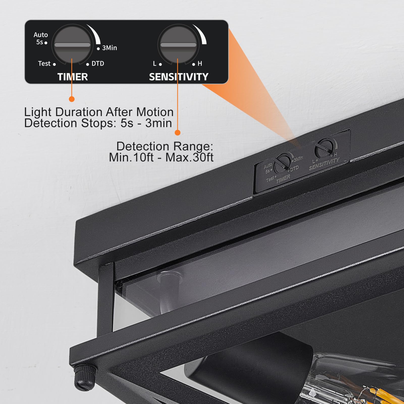 Elevate your outdoor and indoor spaces with this sophisticated motion sensor flush mount ceiling light. Featuring a sleek matte black industrial iron finish and clear glass shade, this fixture seamlessly blends modern farmhouse charm with practical functionality.