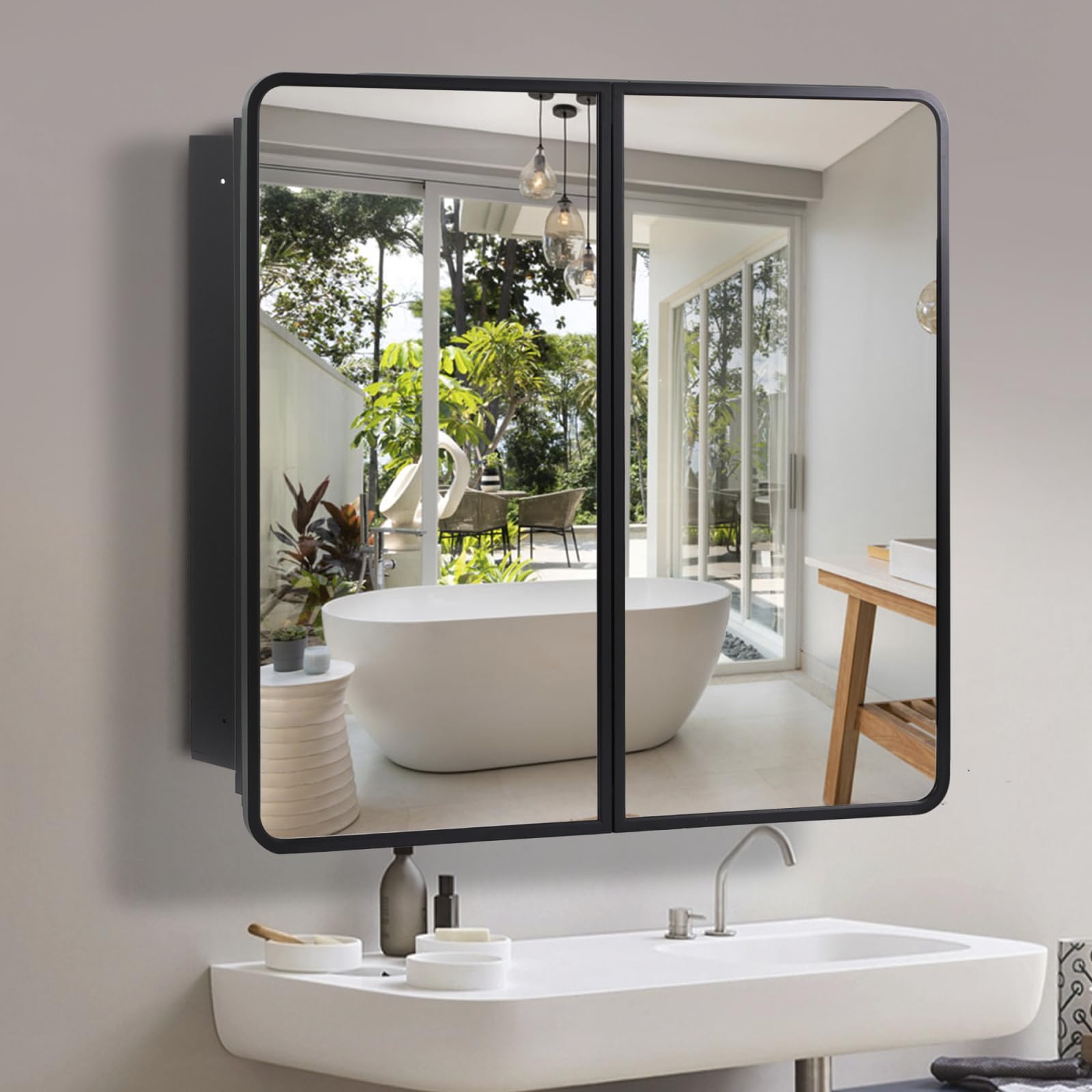 32 in X 32 in Medicine Cabinet Mirror,Black Bathroom Medicine Cabinet with Mirror