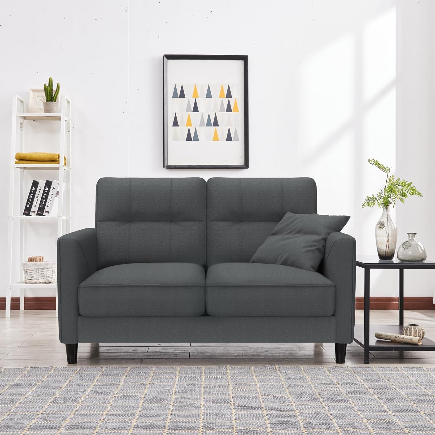 59" Loveseat Sofa for Small Spaces,Fabric Love Seats Furniture for Bedroom,Apartment,Studio,Dark Gray
