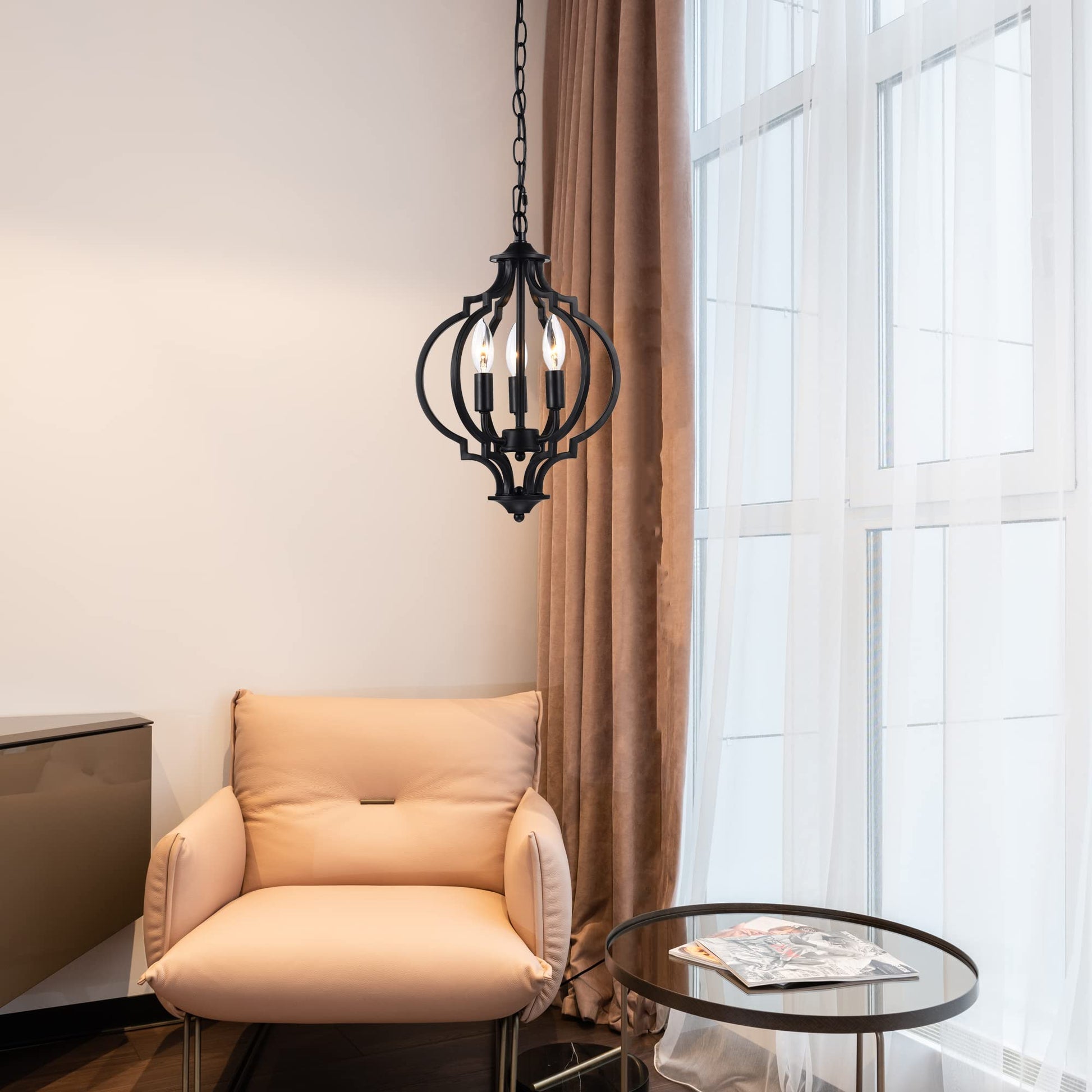 - This 3 light chandelier requires E12 bulbs. lantern light fixture maximum 40 watts 110 volts; please note that it does not include bulbs/lamps. Black farmhouse chandelier fully dimmable with a compatible dimmer switch to create the perfect atmosphere, sold separately