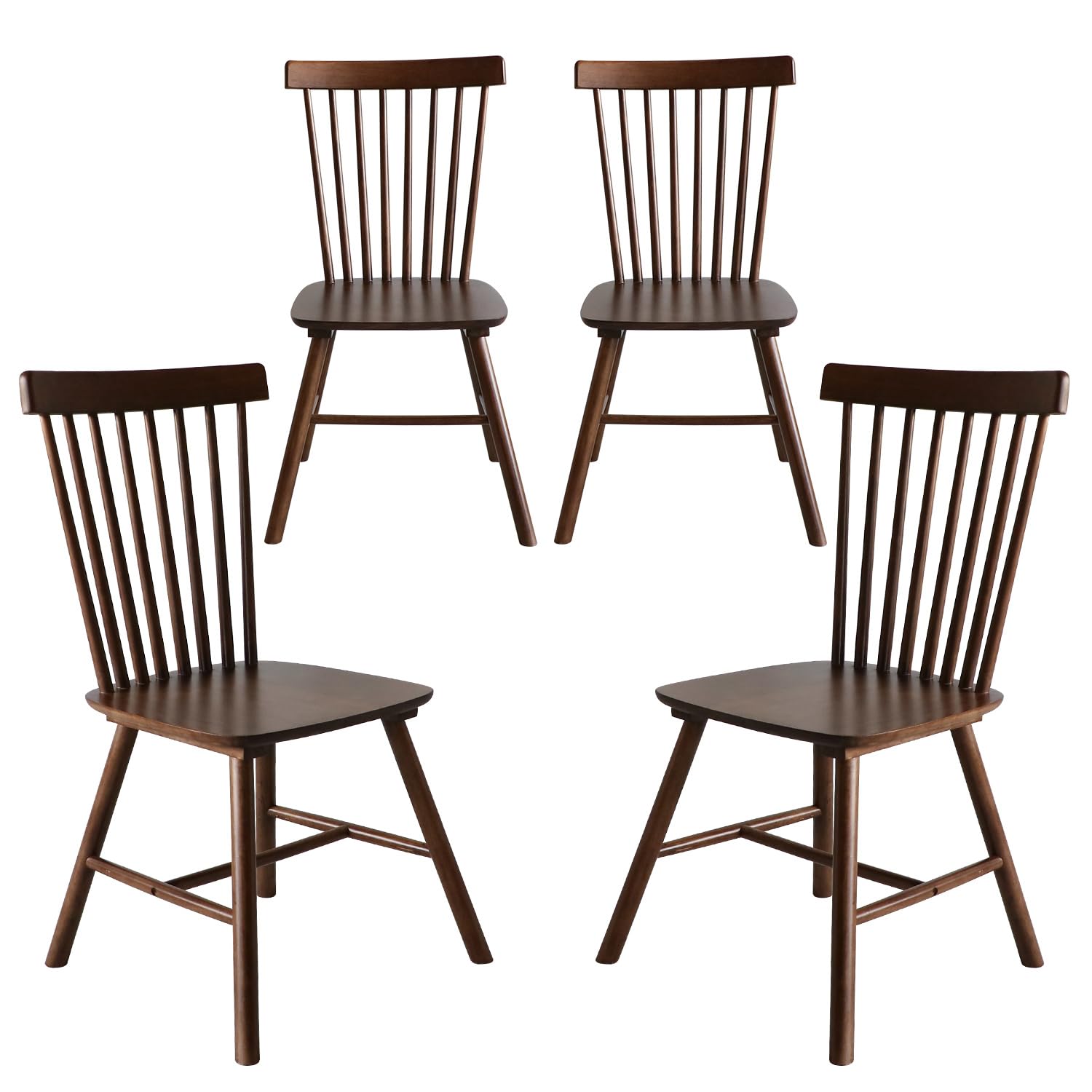 MSOBAIW Dining Chairs Set of 4, Brown Windsor Chair Farmhouse Spindle Back Wood Dining Room Chairs, Solid Wooden Kitchen Chair for Living Room, Restaurant