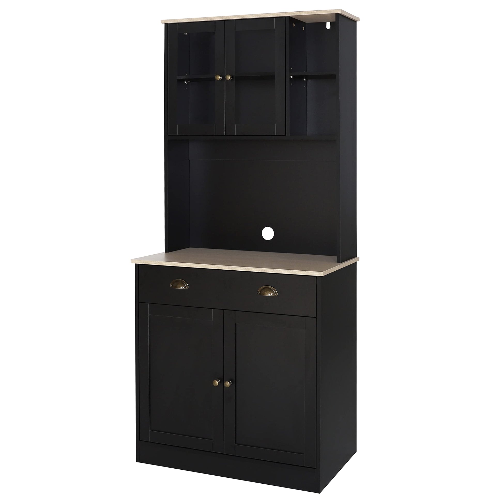 72'' Kitchen Pantry Cabinet Storage Hutch with Microwave Stand, Freestanding Pantry