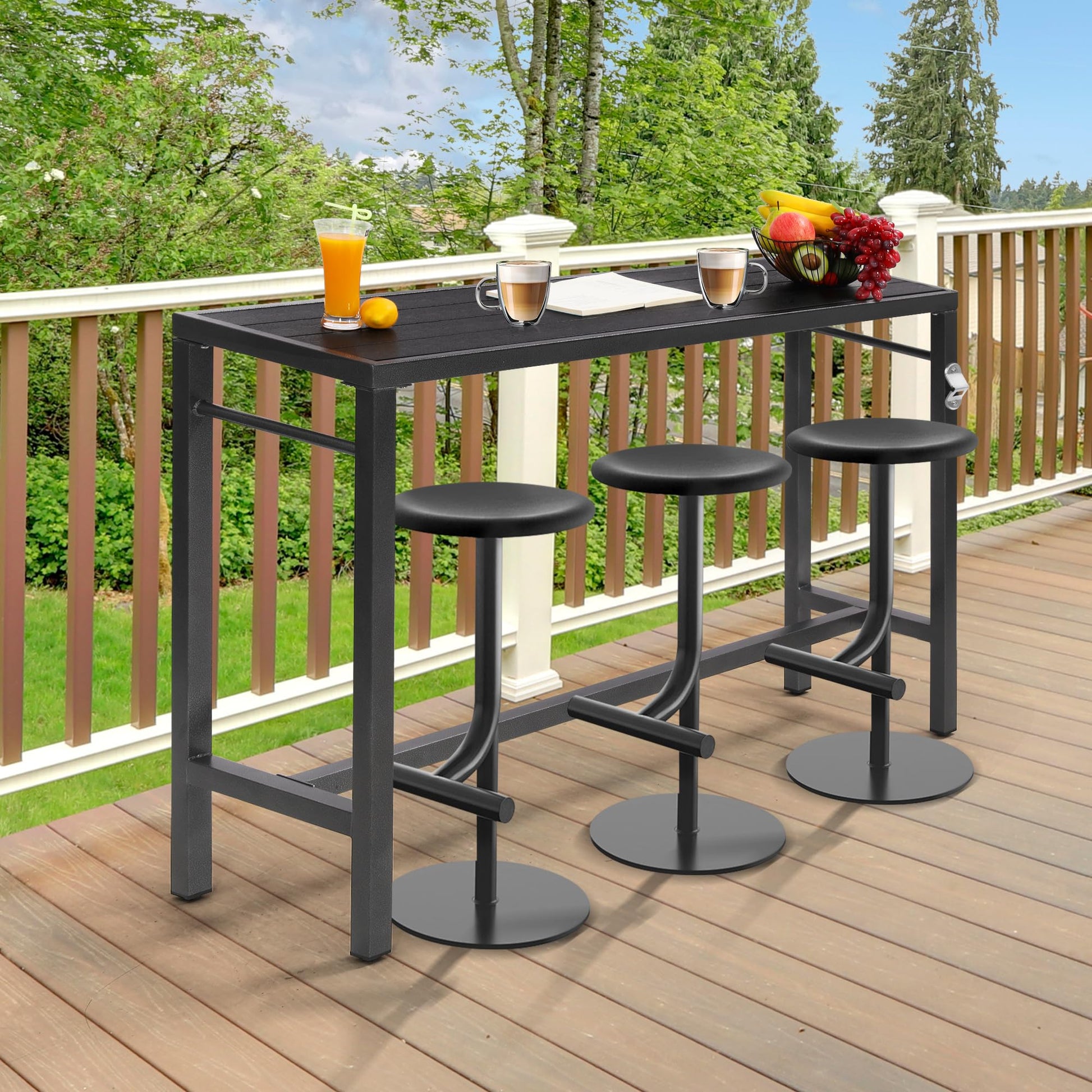 - Our powder-coated steel bar-height pub tables have a composite wood-grained countertop. Unlike engineered wood (MDF) with a laminate top, our premium top will not warp or rot when exposed to standing water.