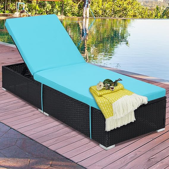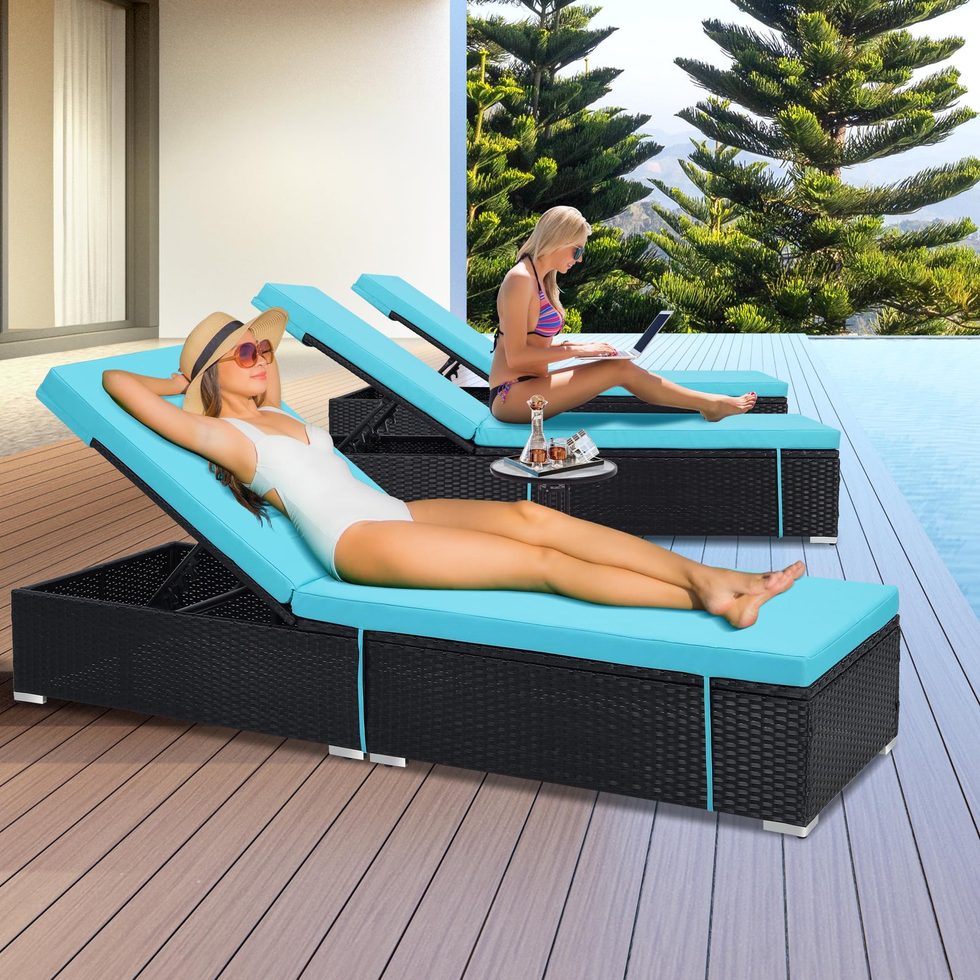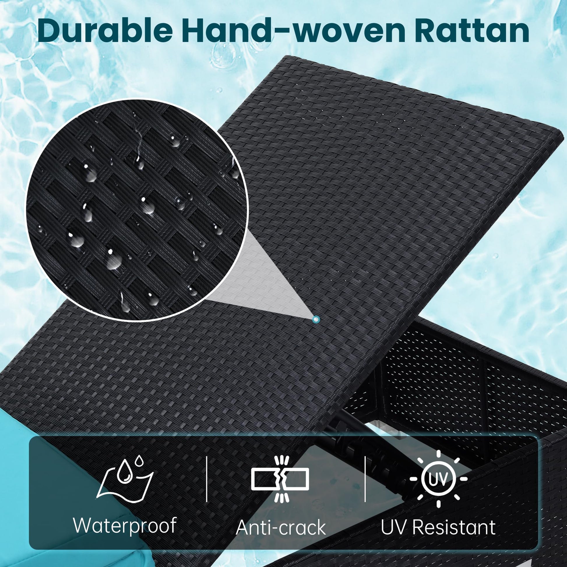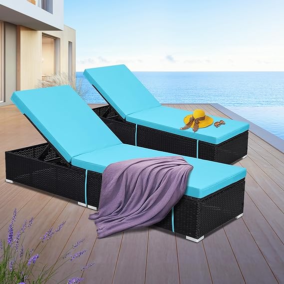 Outdoor Patio Rattan Wicker Chaise Lounge Chair, Set of 2,