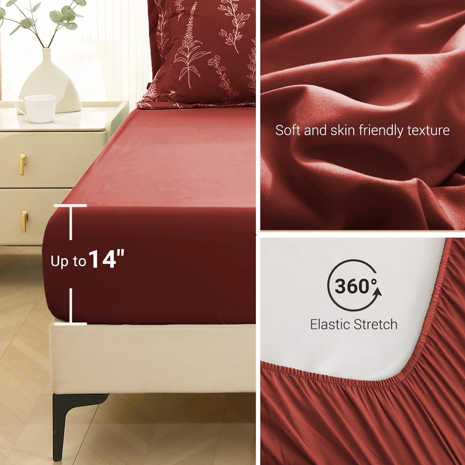 Terracotta Bed in a Bag Queen 7 Pieces, Queen Comforter Set Reversible Botanical Flowers Design,