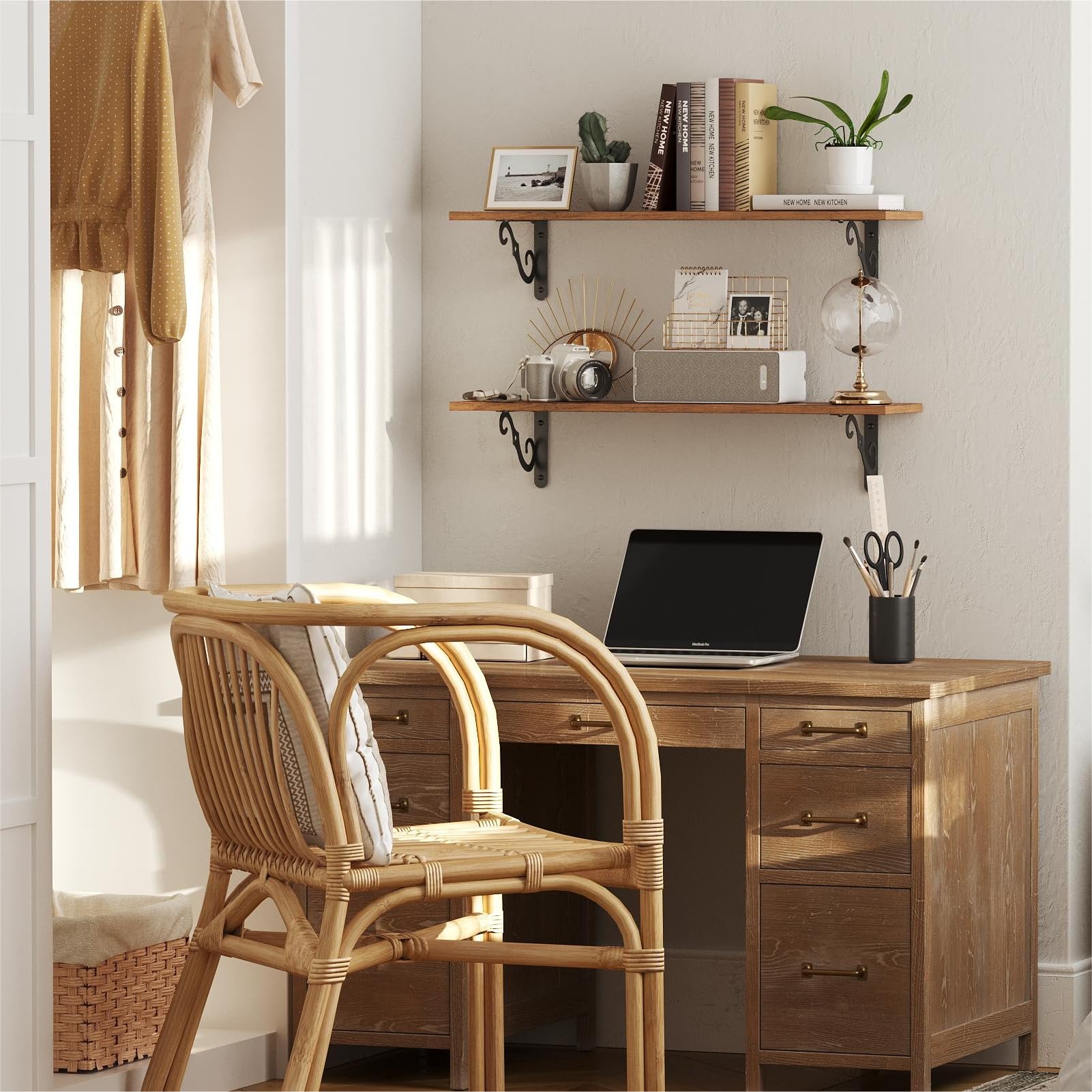 - Rustic Charm Are you tired of bland and boring walls? Spice up your space with our decorative long wall shelves. These shelves feature retro-style wooden boards with natural wood grain and sleek “S” shaped metal brackets that blend in with various styles, such as country and modern. Add some cozy and elegant flair to your home with these lovely shelves that boast a rustic and decorative look, perfect for showcasing your favorite items.