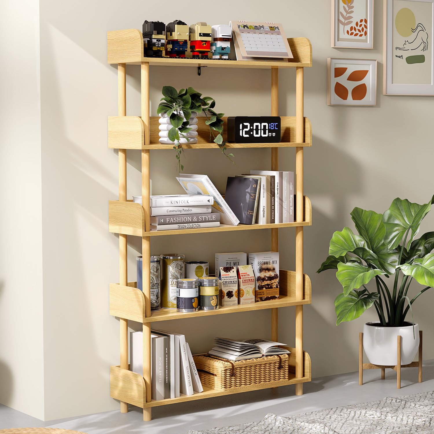 Wooden Open Bookshelf, Modern Display Shelf with Standing Storage Rack, Multifunctional Bookcase for Home and Office, Living Room, Bedroom, Library (Oak, 5-Tier)
