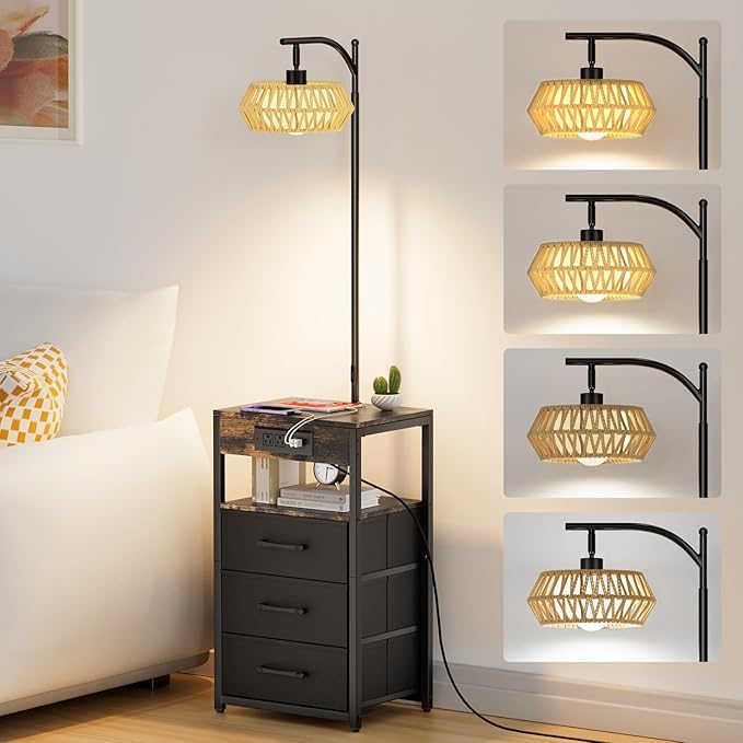 - The Myipyi boho floor lamp with table is a multifunctional piece of furniture that combines a side table with lamp. It not only provides storage but also serves as a table and offers lighting. Myipyi floor lamps for living room is versatile for various settings. the side table with lamp can be placed beside the bed, beside the sofa, beside the TV, or beside the recliner according to your personal preference to meet your different needs.
