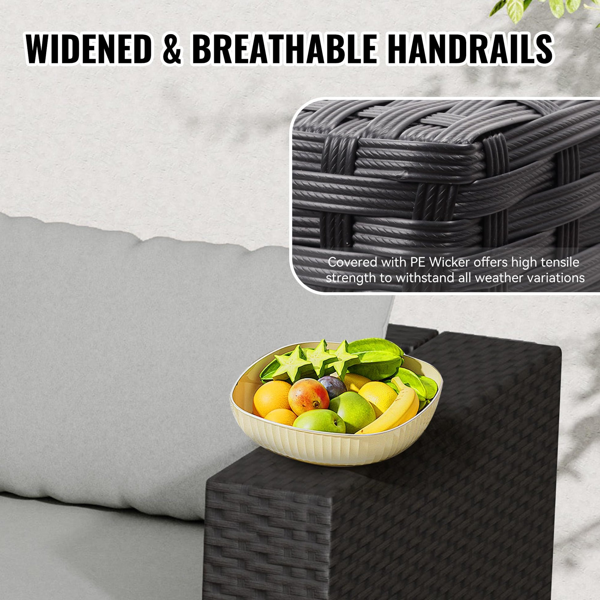 - Sturdy & Durable This patio furniture set is found atop a powder-coated rust-resistant steel frame, wrapped in dense all-weather handwoven PE rattan which is strong enough to survive inclement weather and guarantees the set has a long service life, adds the perfect experience in any outdoor space.