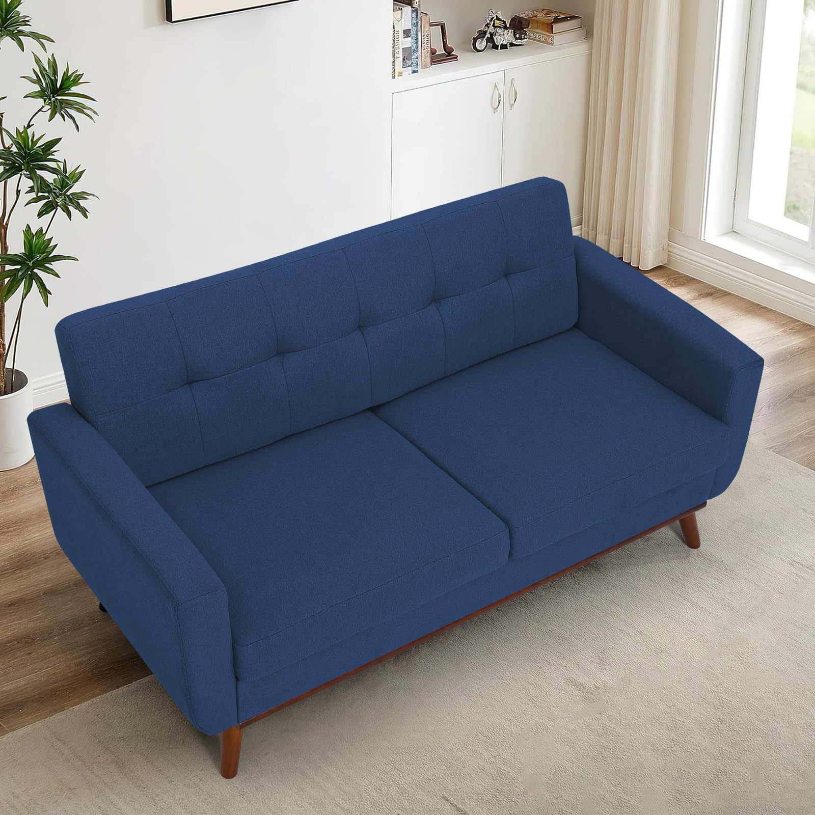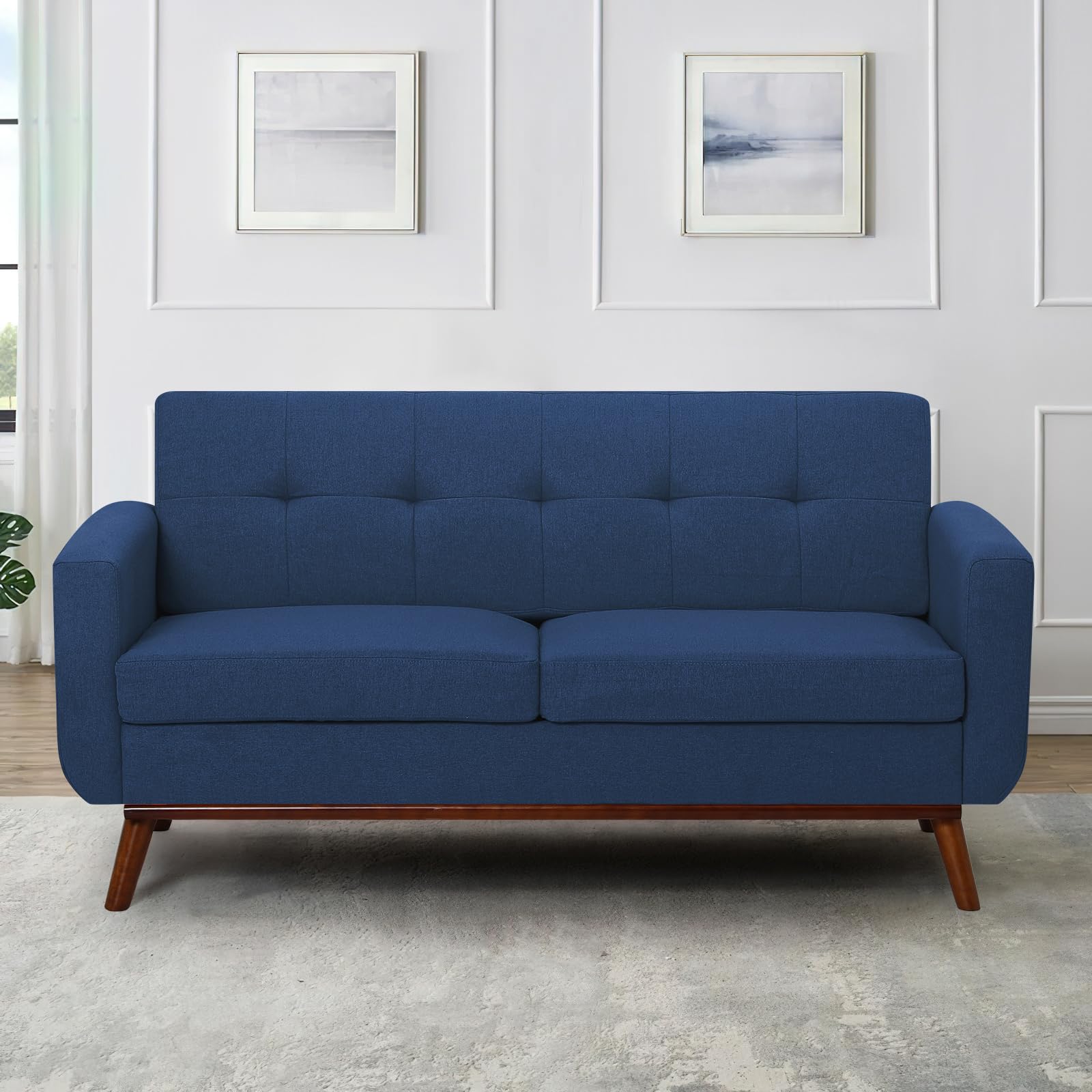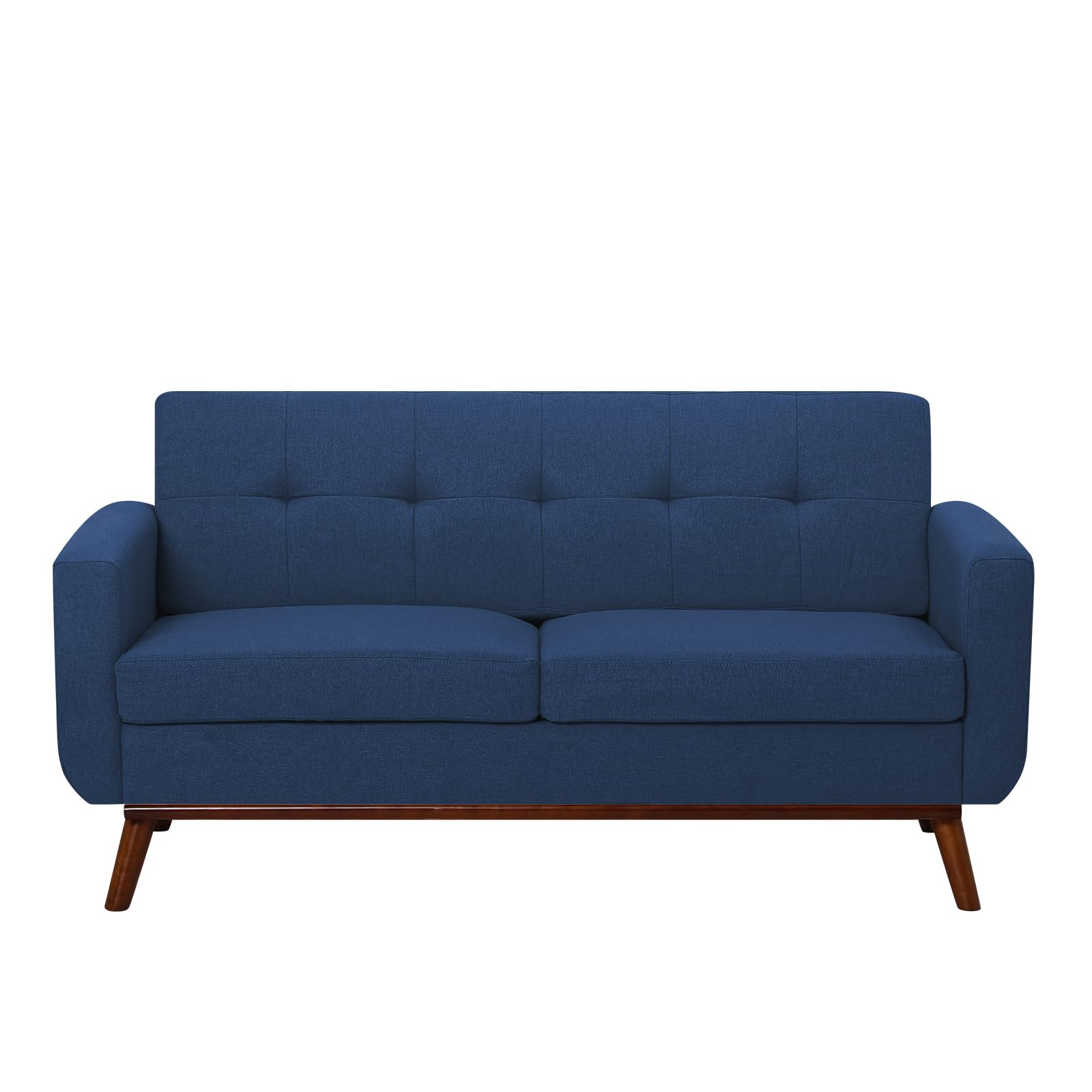 65" Linen Fabric Loveseat Sofa with Tufted Backrest, 2-Seat Mid Century Couch with Wooden Legs