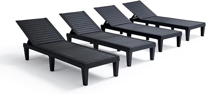 - Durable Patio Lounge Chair: Our lawn chairs are crafted from weatherproof polypropylene resin with a stylish wood grain design. Sturdy and comfortable, the weight limit on this outdoor lounge chair is 265lbs.