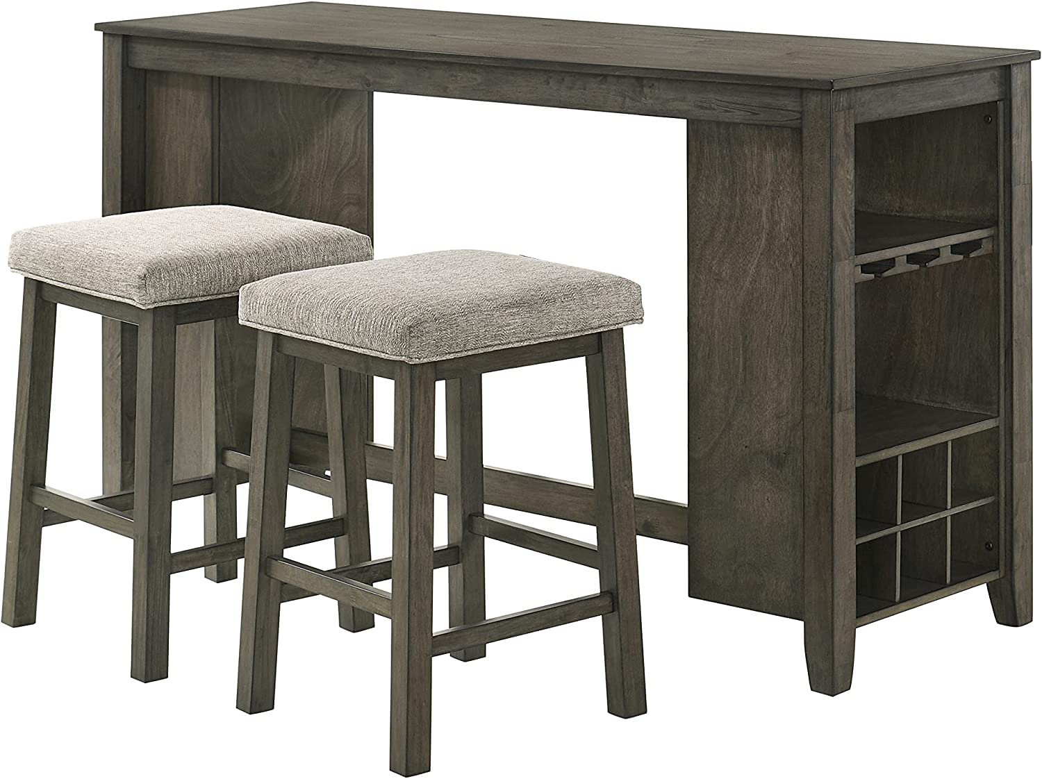 - Product Dimensions: This bar table set includes Bar Table and two Bar Stools – Bar Table: 64”L x 20”W x 36”H, Shelf Space: 13.625”W x 7.375”D x 29.25”H, Bar Stools: 16.25”L x 16.25”W x 25”H – Weight Capacity: 250 lbs.