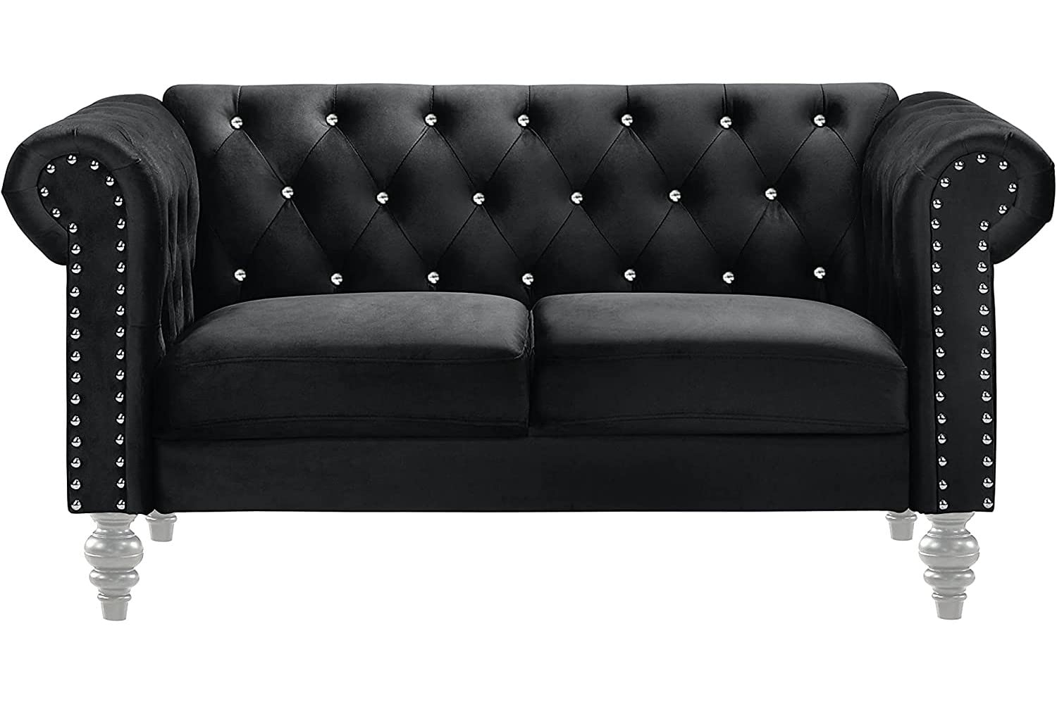 - BEAUTIFUL VELVET SOFA: 2-Seater Black Loveseat in the classic Chesterfield Sofa style adds a glam touch to your living room.
