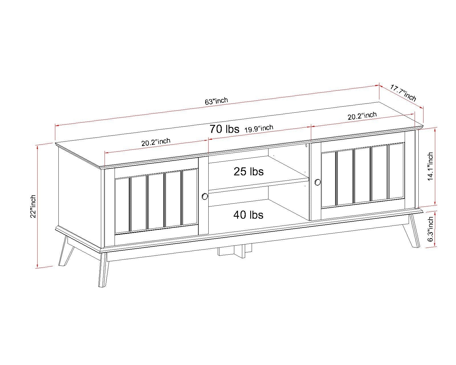 - DESIGNED FOR STYLE AND FUNCTIONALITY: This quality Mid-Century multi-tasker can enhance the look of your living room, den or family room. Not only does it showcases your TV, but it also helps you stay organized by serving as storage space for your books, DVDs, game consoles, and other media equipment. Durable, thick ,and high-pressure laminate will better withstand daily use and abuse than pure wood or veneer.