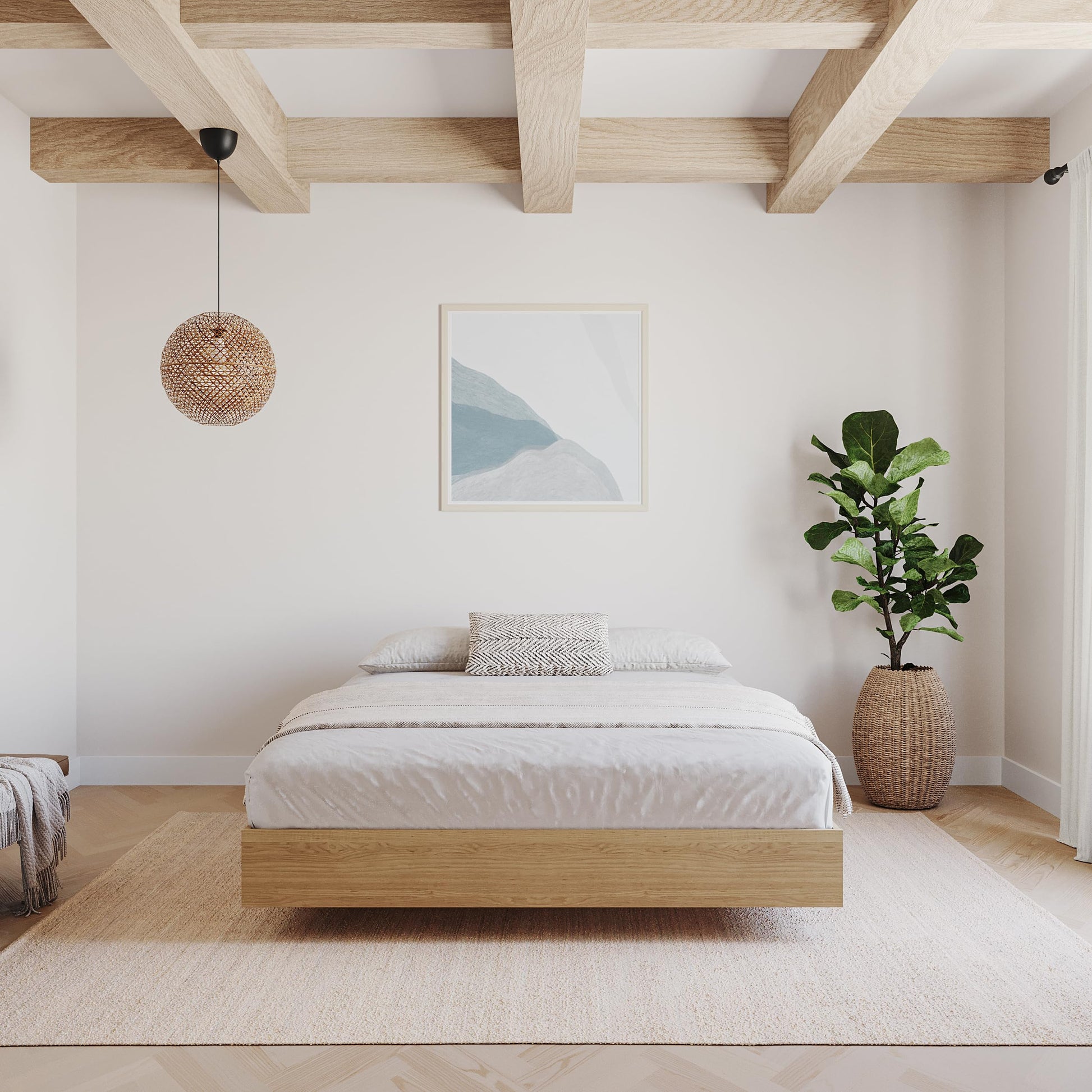 - Its unique design gives the impression the bed floats above the ground, giving the entire room an airy feel. Features a unique metal and hardwood slat construction allowing for easy assembly, sturdy construction and easier handling.; Item Height 11.75; Item Length 61.25; Item Width 81.75
