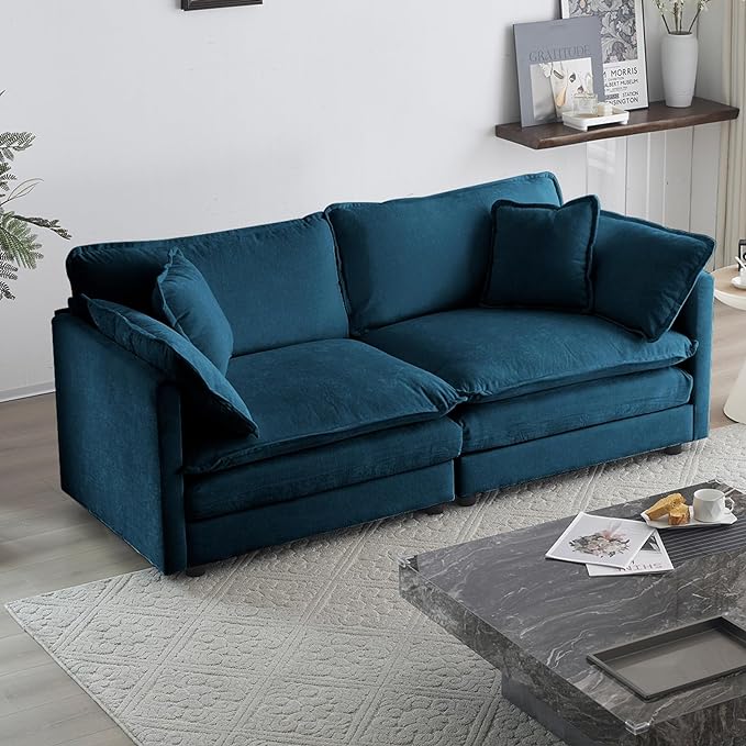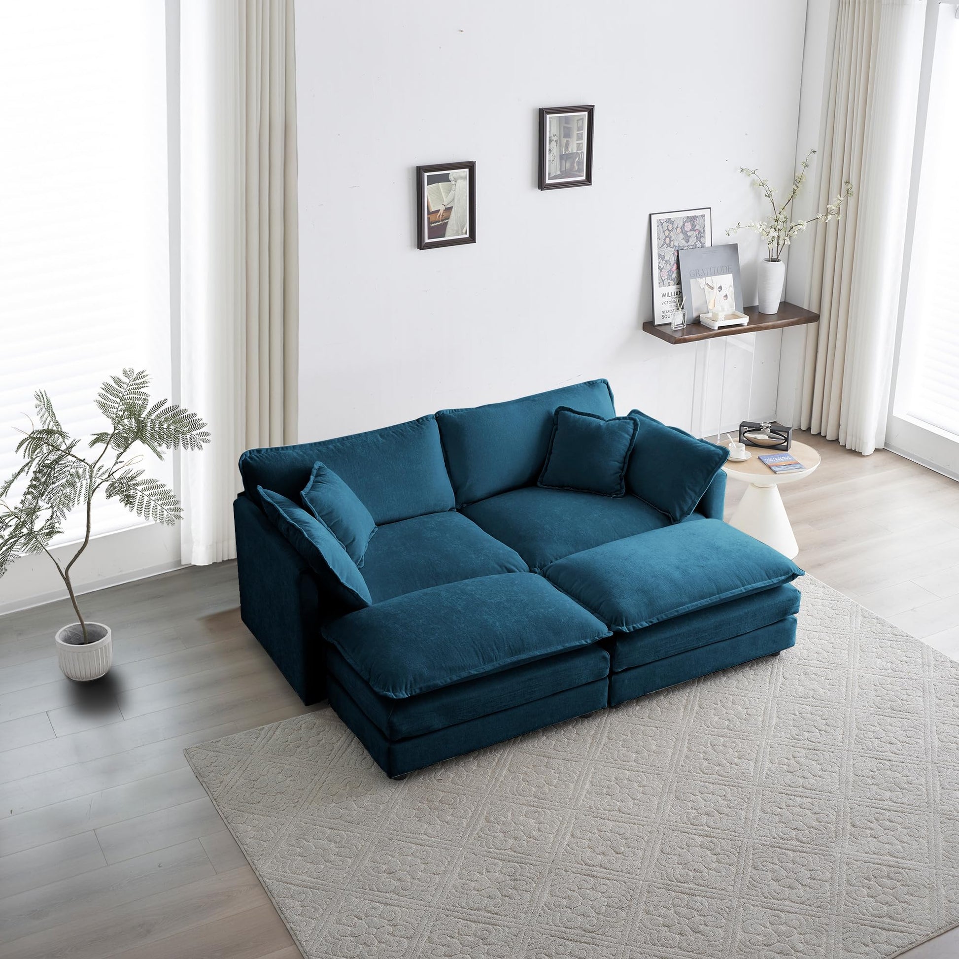 - Superior comfort - Upholstered in high-end breathable Chenille fabric and high-quality sponge, with cushioned thick foam at backrest and seat for prime relaxation. Lean back and stretch out your legs out long on the ottomans when you or guests need more space. Customize the placement of the five pillows anywhere you would like to add extra support when sitting after a long day or watching a movie.