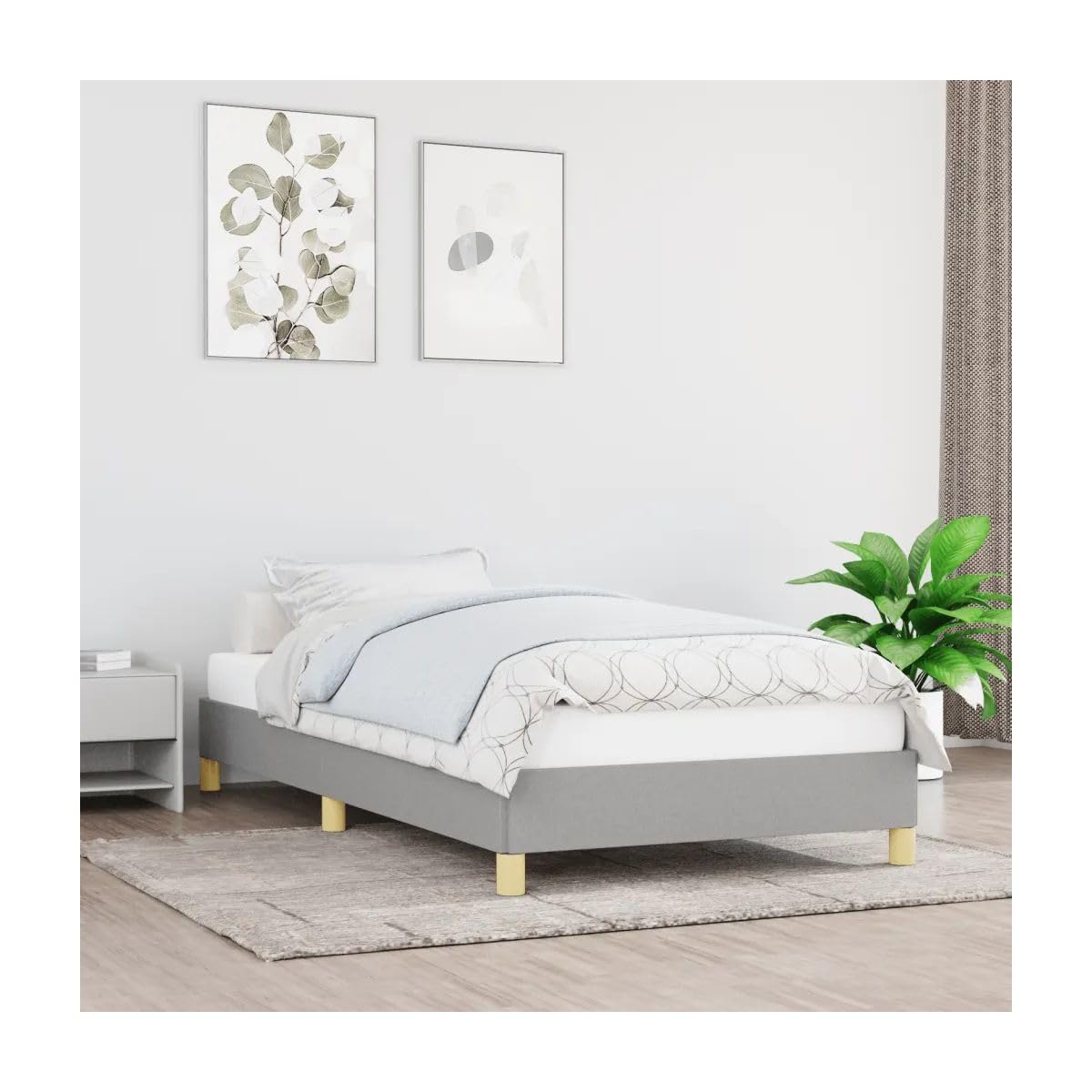 Bed Frame Light Gray 39.4"X74.8" Twin Fabric