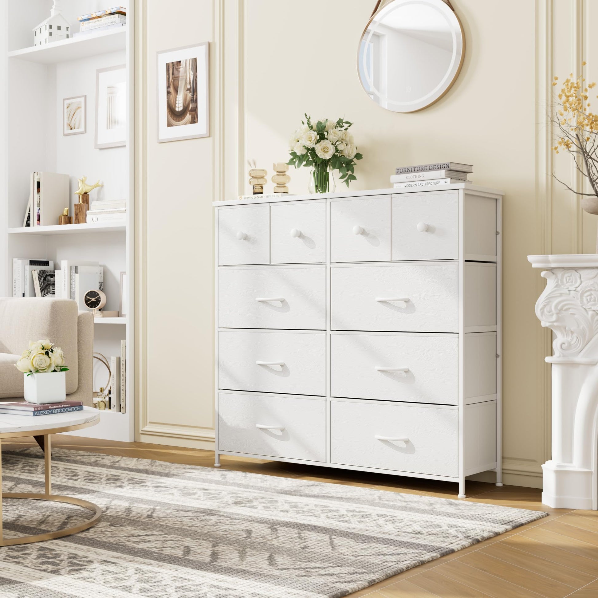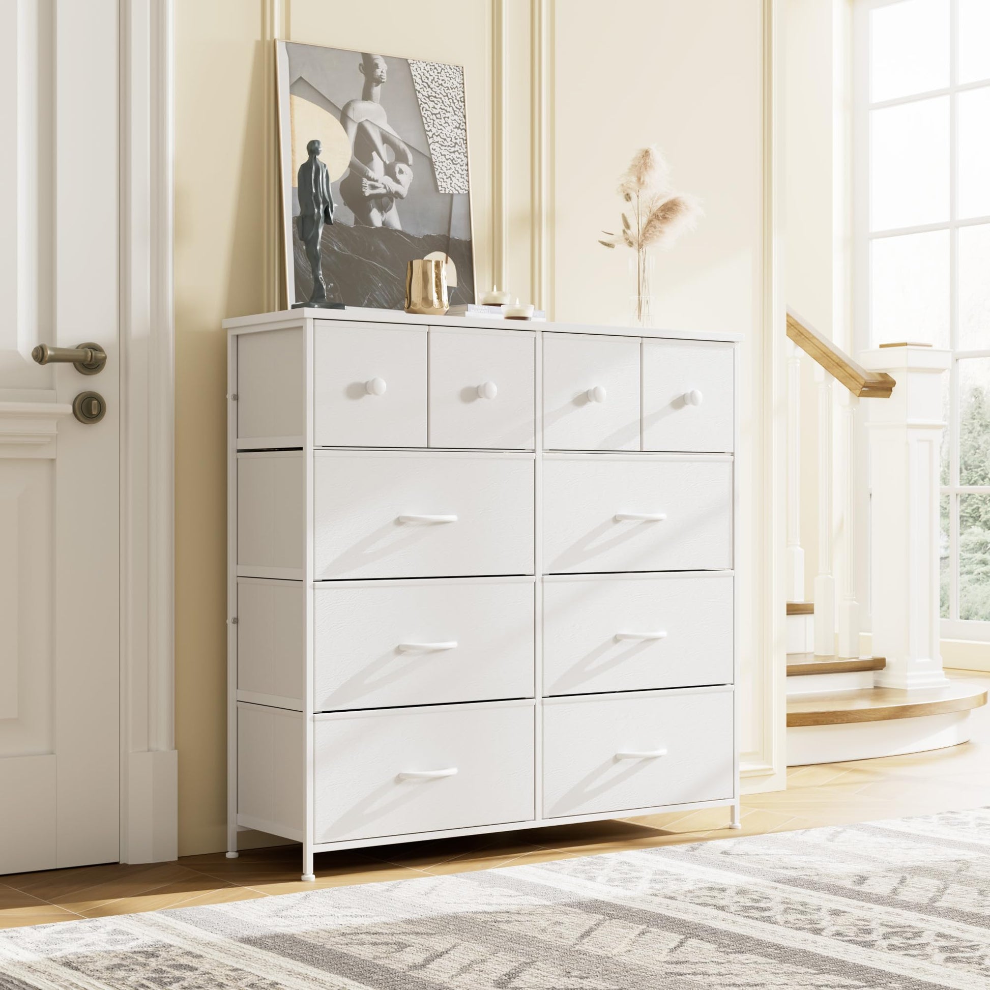 White Dresser, Dresser for Bedroom with 10 Drawers, Storage Drawer Organizer