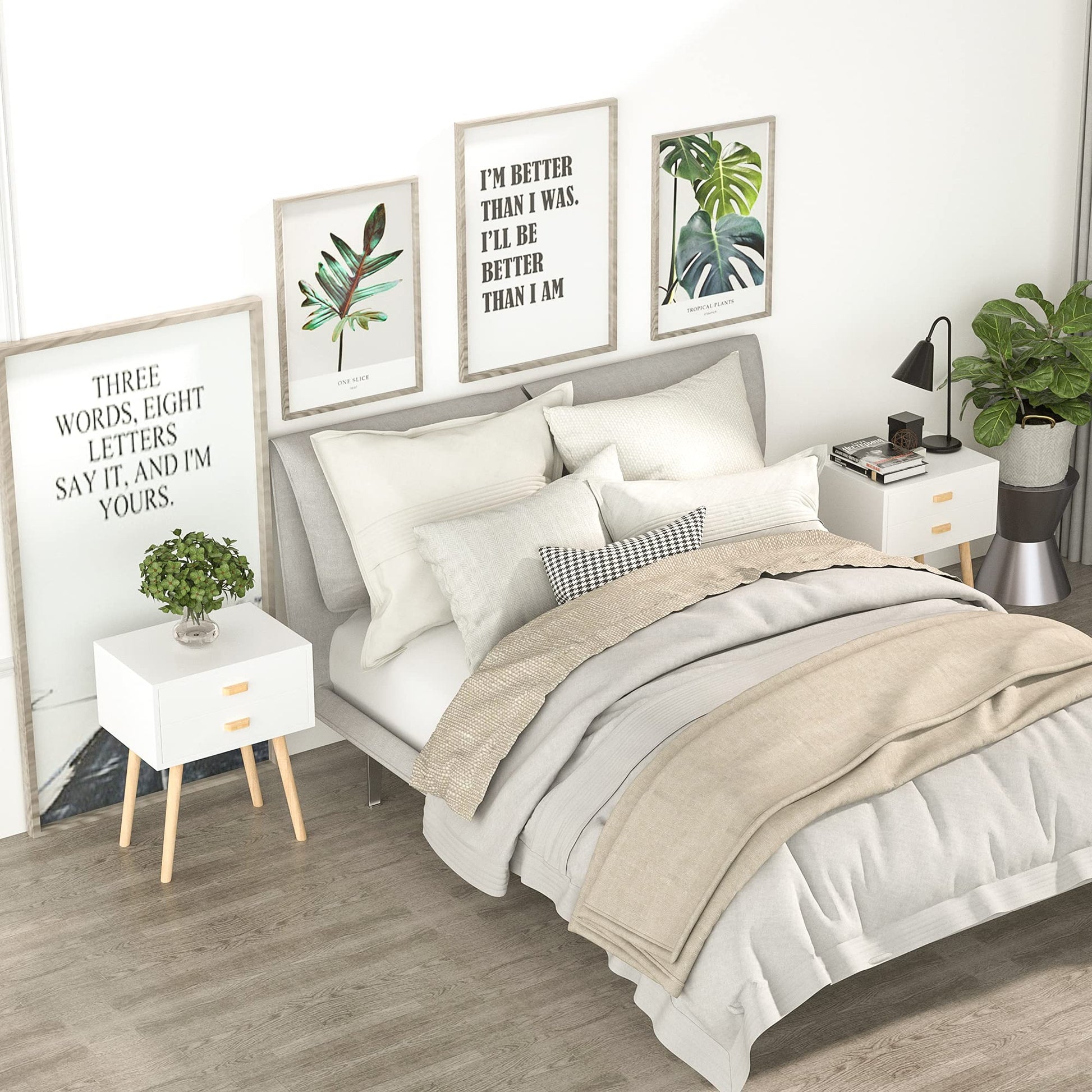 - Sturdy Material: Modern nightstand is made of high-quality and sturdy MDF+ solid wood feet, which is firm, hard, durable, with a load-bearing capacity of 110 pounds, and can be stored, cosmetics, books, socks, silk scarves, jewelry, etc
