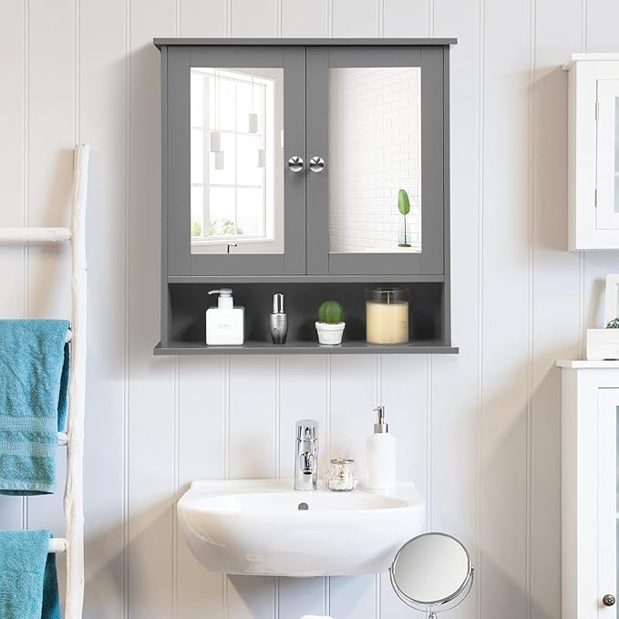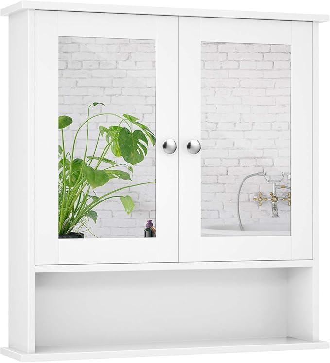 - Multifunctional Bathroom Cabinet: This versatile bathroom cabinet is a universal medicine cabinet that can store pills and emergency medicine and keep the bathroom clean. There are 2 adjustable shelves and open shelves for different items and decorative plants. The mirror door is convenient for makeup and shaving, and can also be used as an ordinary bathroom cabinet.