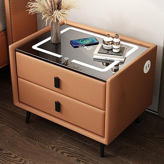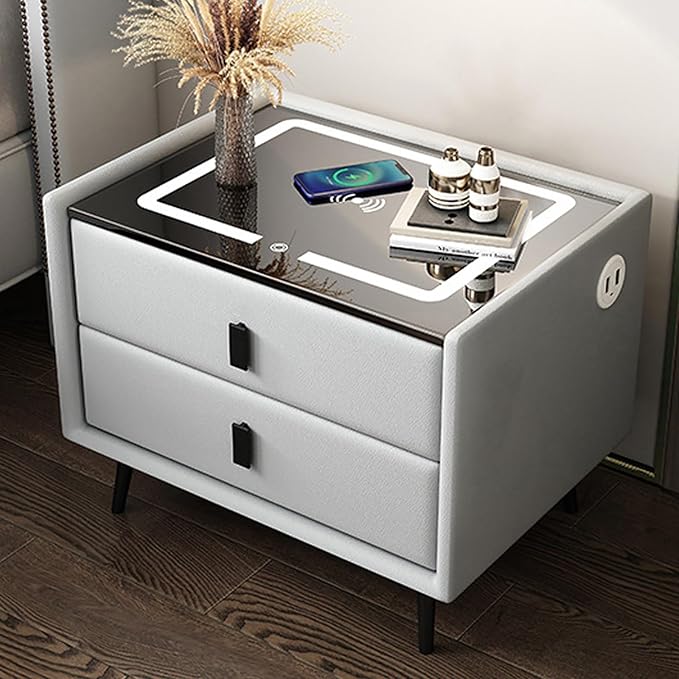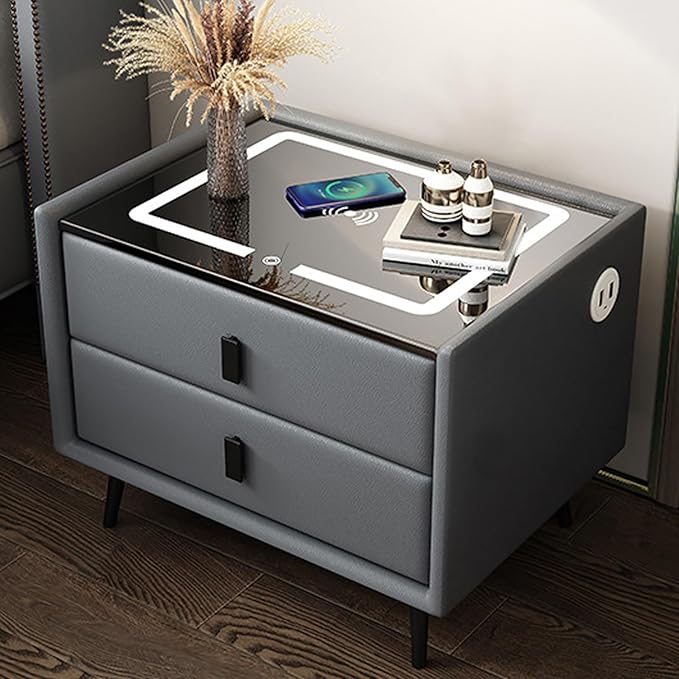 - Our smart bedside table is equipped with both USB and wireless charging modes.The wireless charging design makes charging more convenient, but only supports mobile phones with built-in wireless charging function,and other can use USB port.