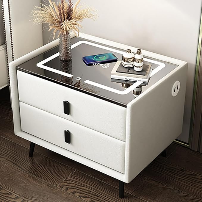 Nightstand with Drawer, Smart Nightstand, Nightstand with Charging Station, Modern