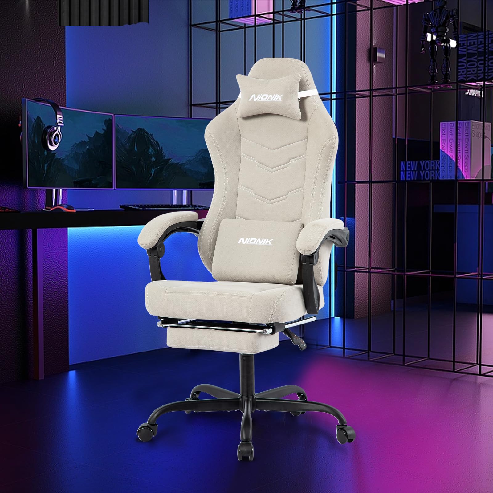 - Multi-Function Adjustable Gamer Chair This computer gaming chair comes with an adjustable reclining function that allows customers to lock in any reclining position from 90°-135°. In addition, footstool and seat height can be easily adjusted, removable neck pillow and massage waist pad. When you feel tired from sitting for a long time, you can adjust the position of the back and foot stool and lie on the gaming office chair to rest. Provide maximum relaxation for your body and legs.