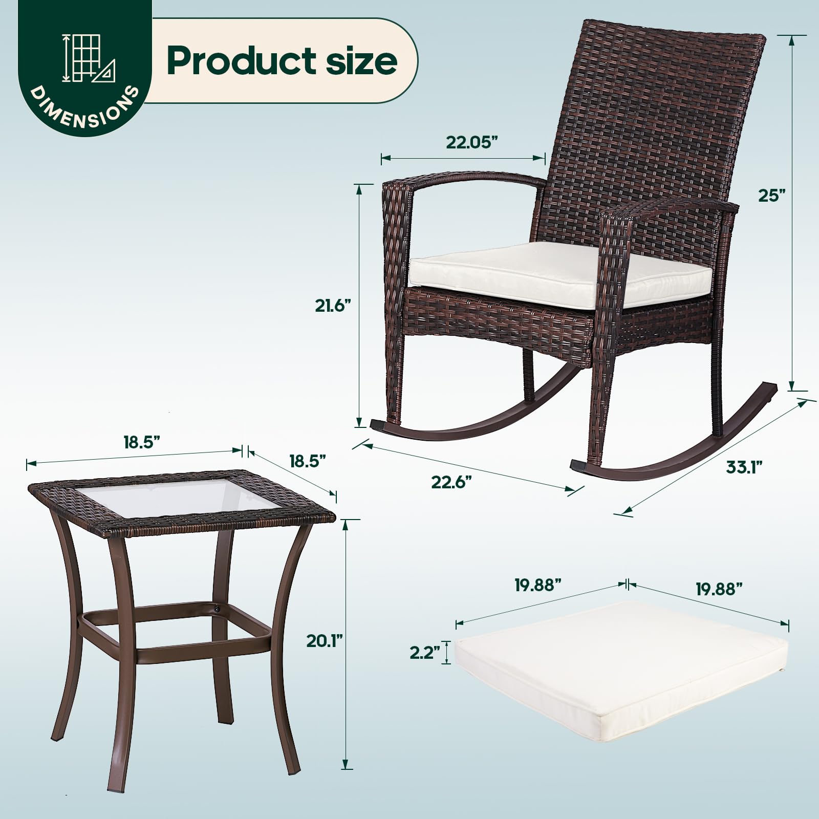 3 Piece Wicker Rocking Chair Patio Furniture Sets, Outdoor Wicker Bistro Rattan Chair