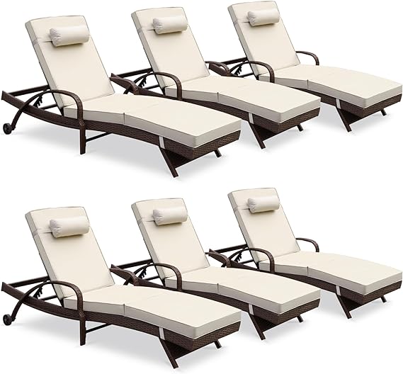 - 6 RECLINING POSITIONSFeaturing 6 adjustable reclining positions, this pool lounge chairs set of 2 allows you to choose a personalized comfort and meets your demands for different reclining positions and sleeping or lying posture